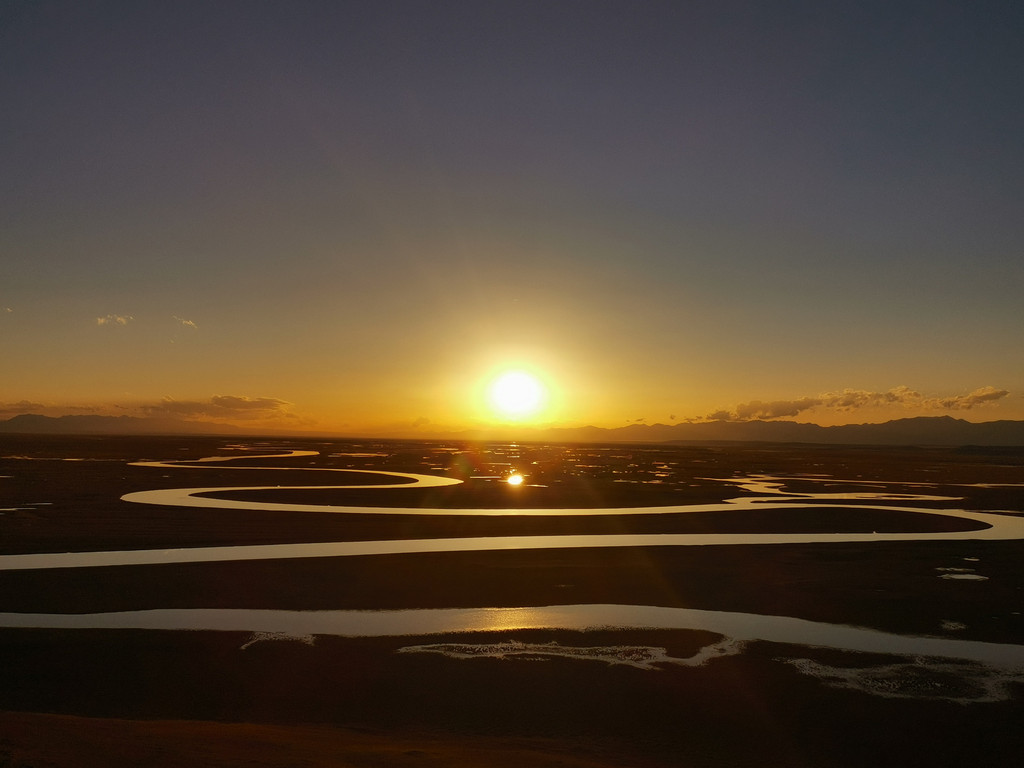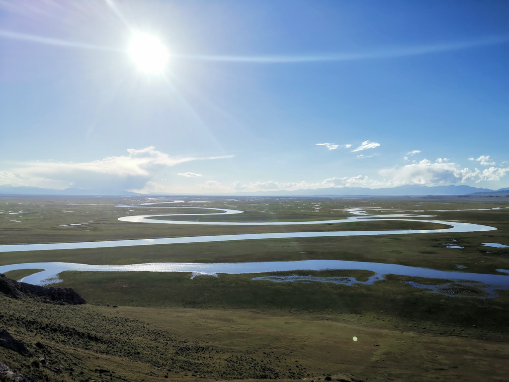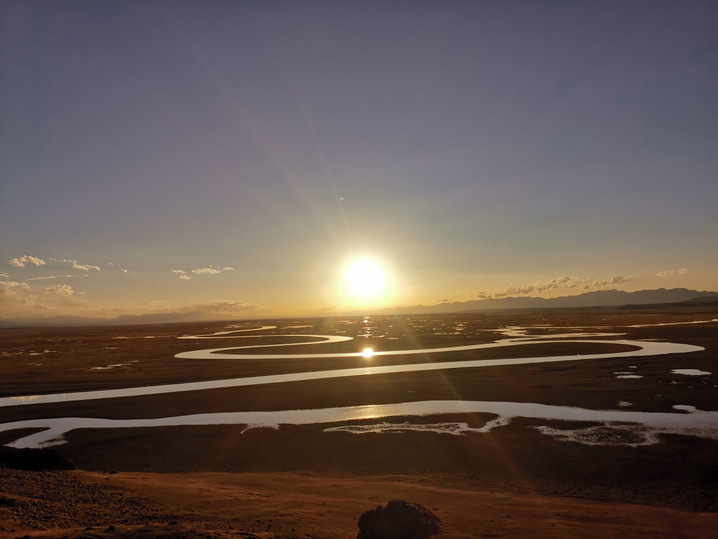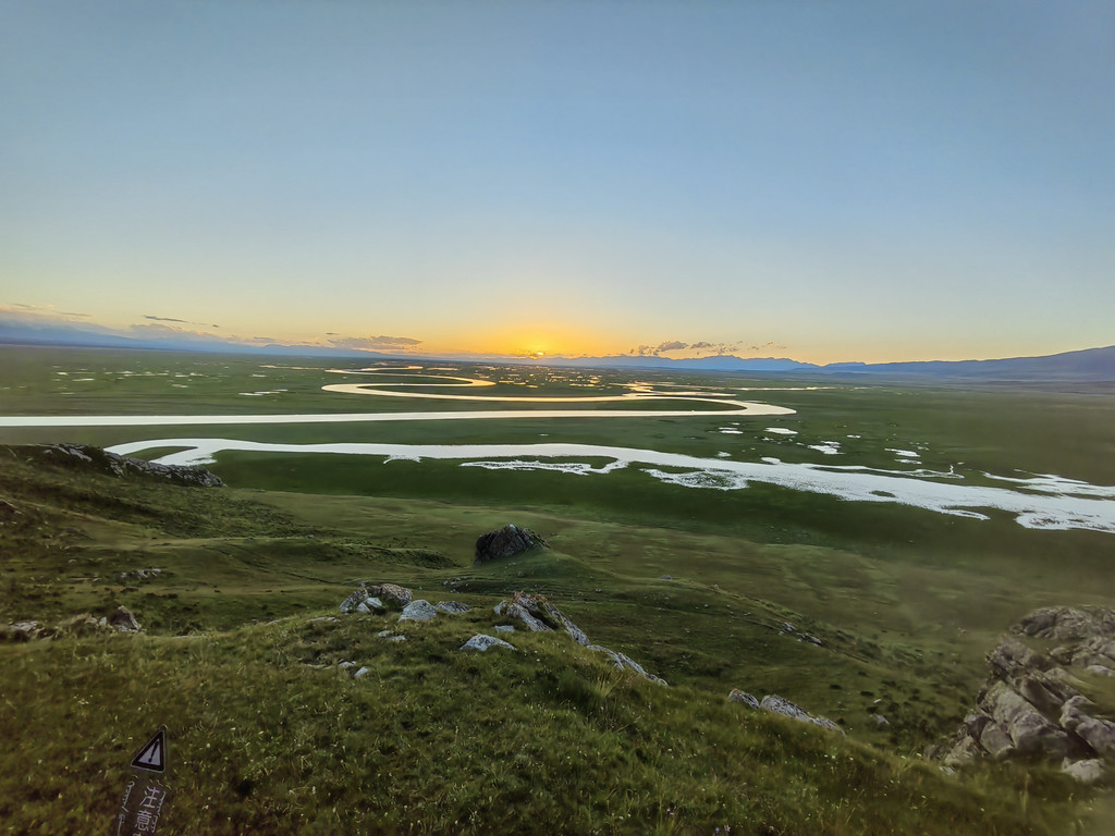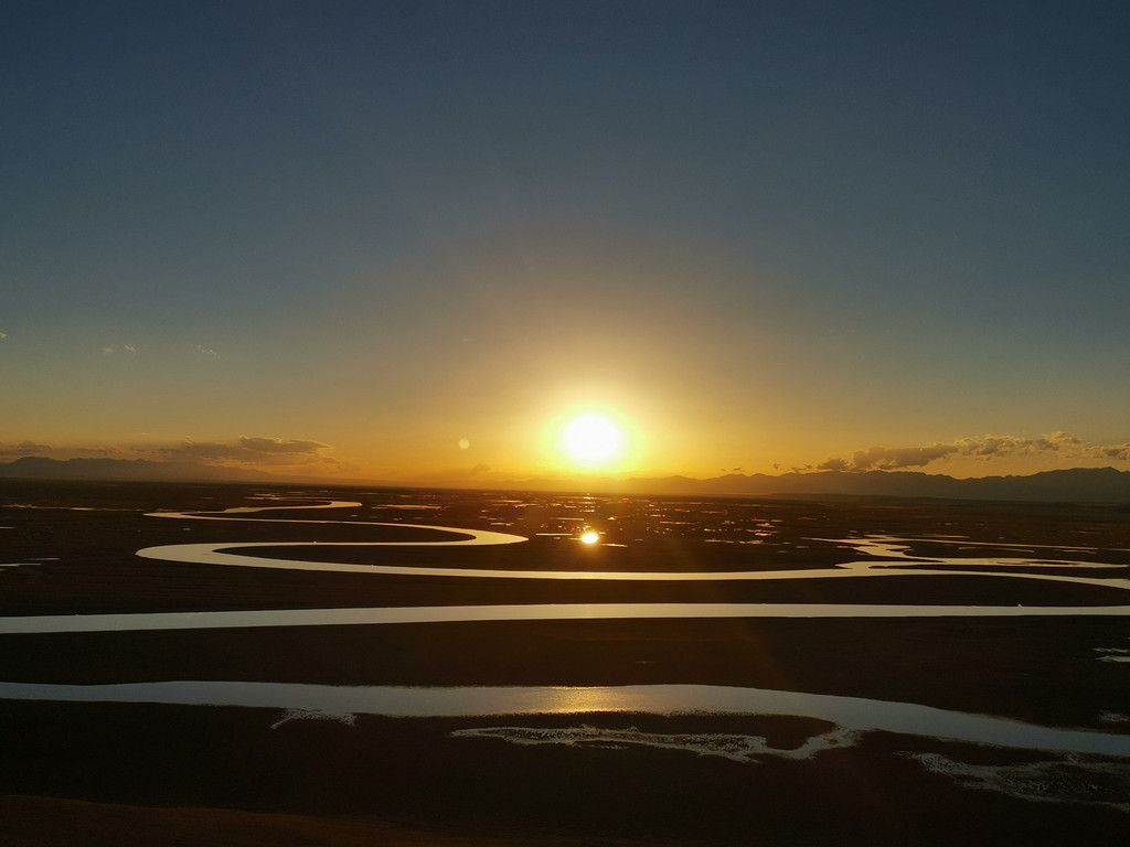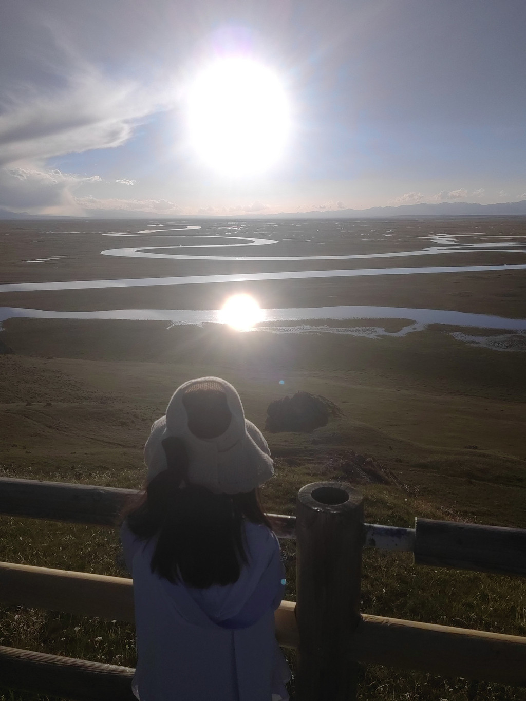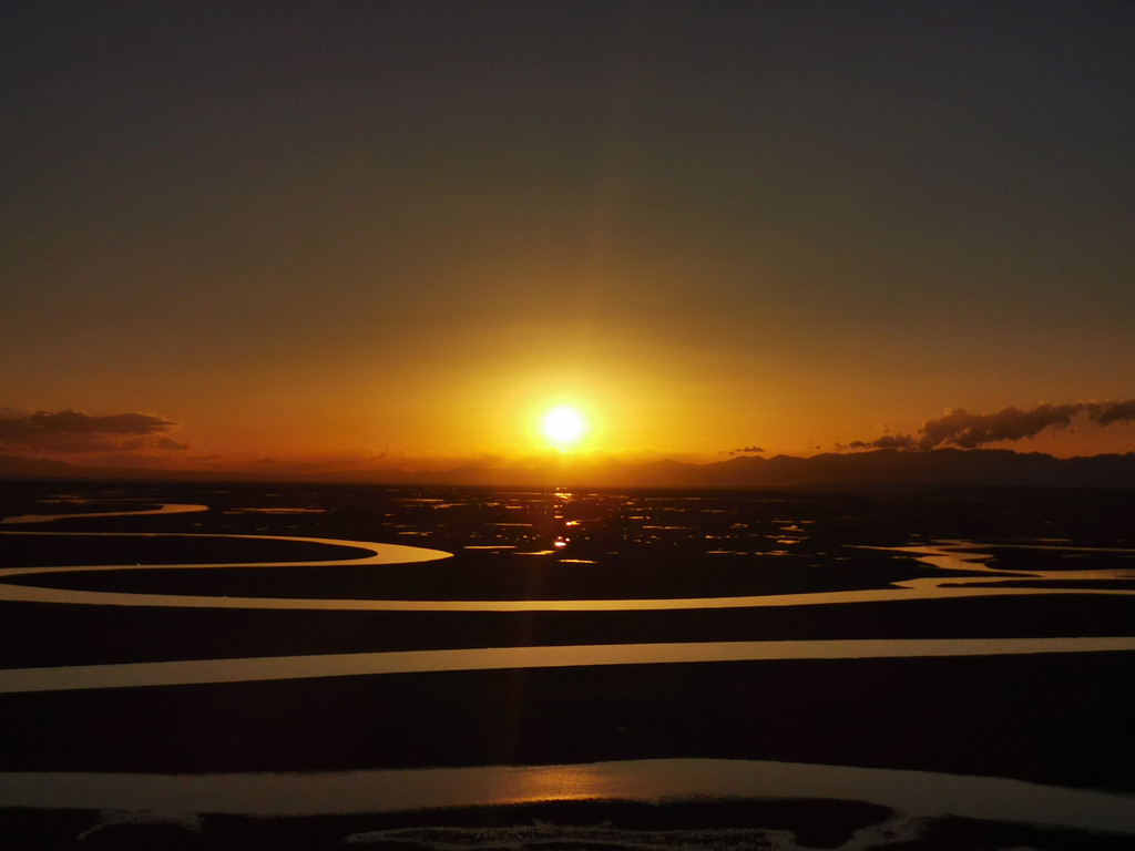 尽管没有看到九个太阳,但看了一场壮美的日落,尤其弯弯曲曲的开都河像一条玉带延展到远方,也是挺值得的。这一天也算是大饱眼福的一天。