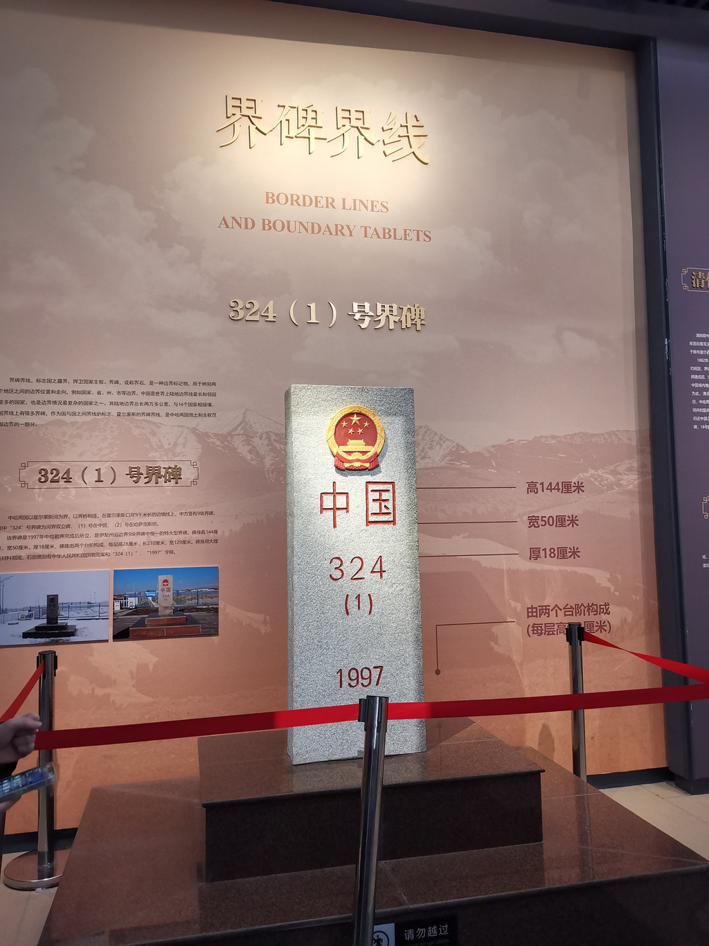 在展览馆里,有“324(1)”界碑展示,可以拍照,因为真正的界碑因为边境管理要求,不能到跟前参观,在瞭望台上可以远观,但不能拍照。在参观界碑的通道上,还有一块界碑,那是清朝时期的界碑,也是耻辱碑。登上眺望台,可以看到对面哈萨克斯坦的建筑,因为耳边一直提醒着“禁止拍照”,所以对面的风景就只能留在脑海里了。