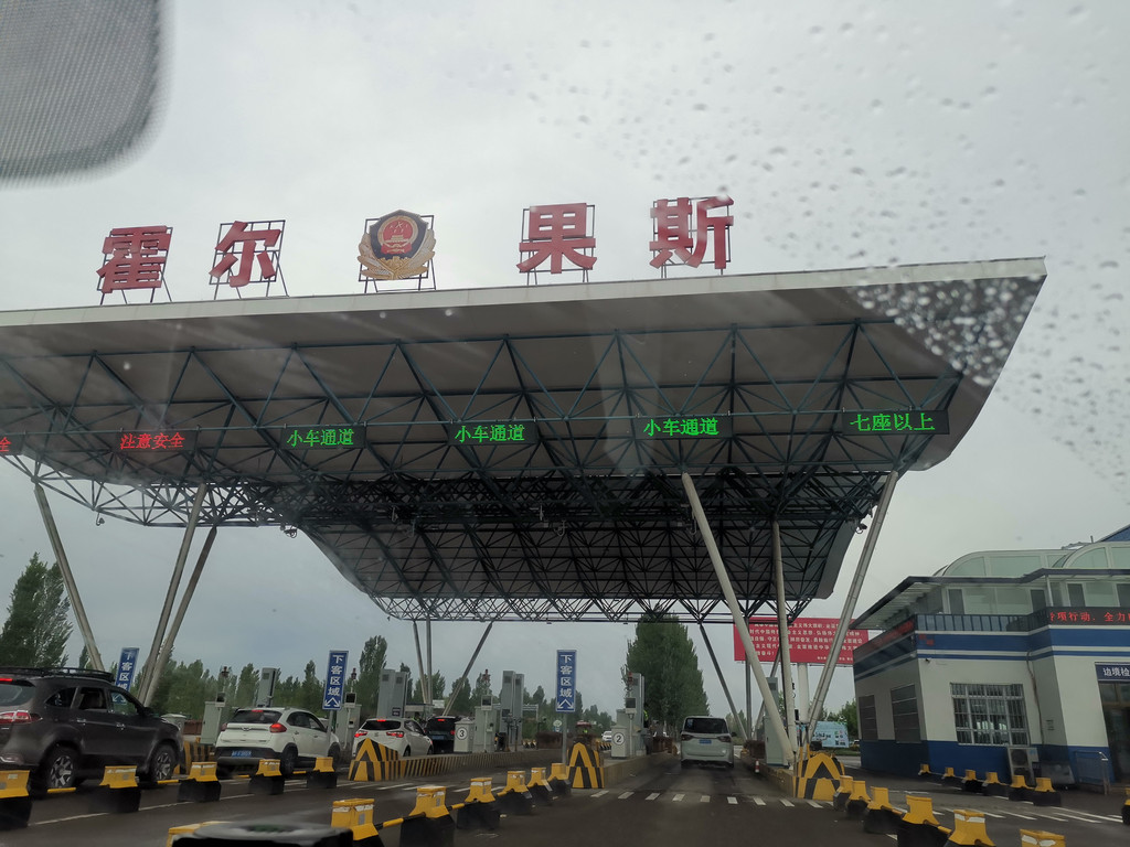 导航到霍尔果斯国门景区,也就是老国门(第五代国门),沿着连霍高速直到高速终点。