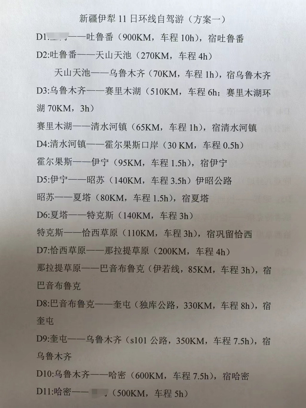 附上最初的行程计划,或许以后还有用,或许能帮上正在计划新疆行程的你。