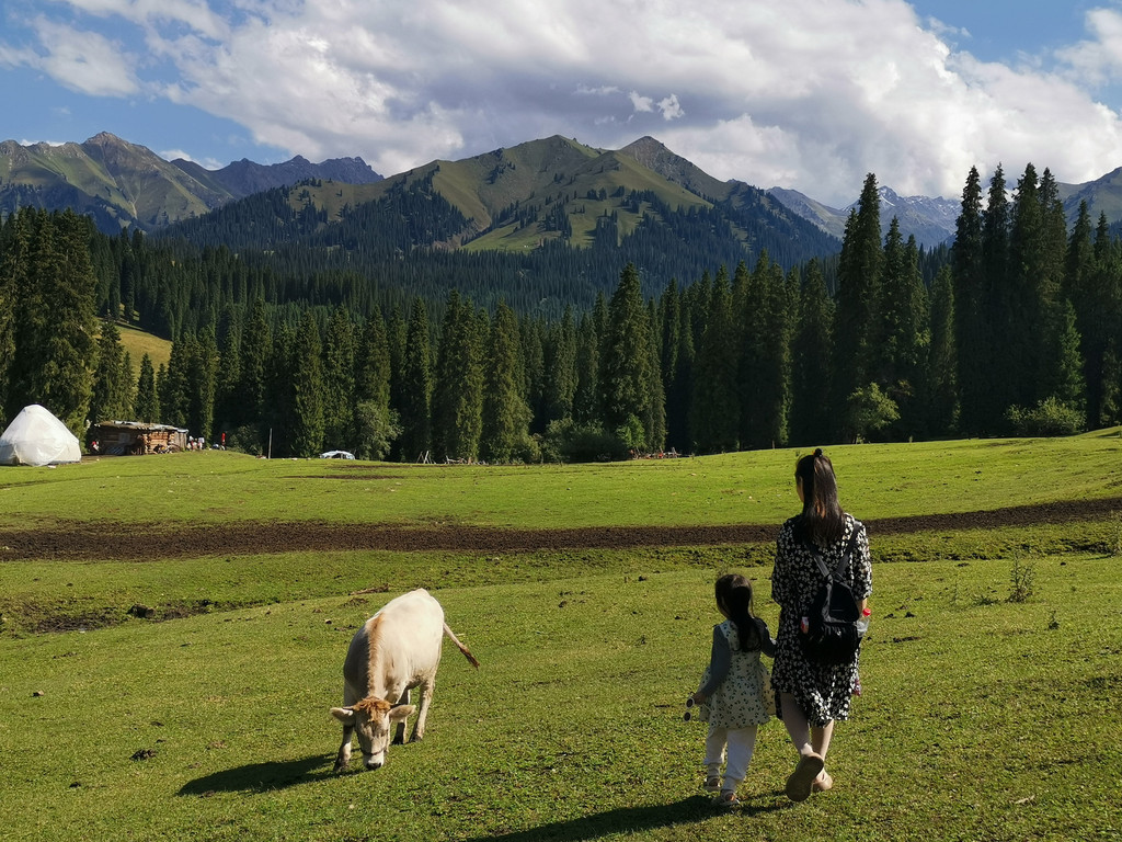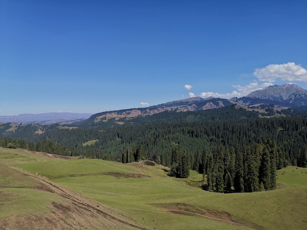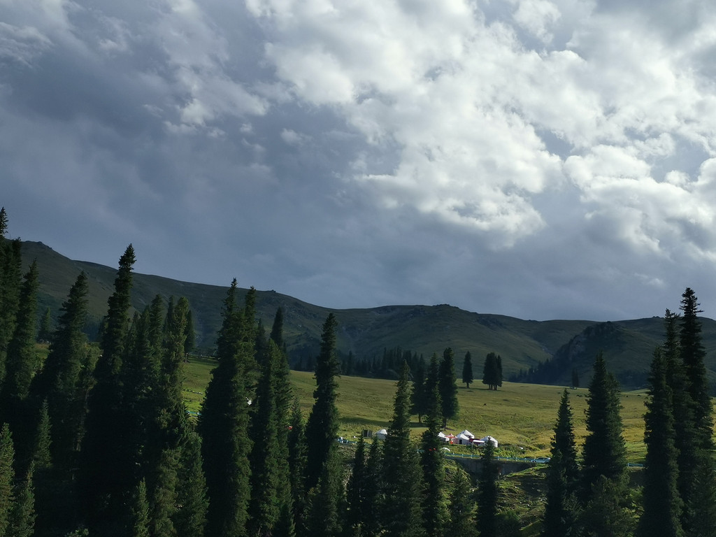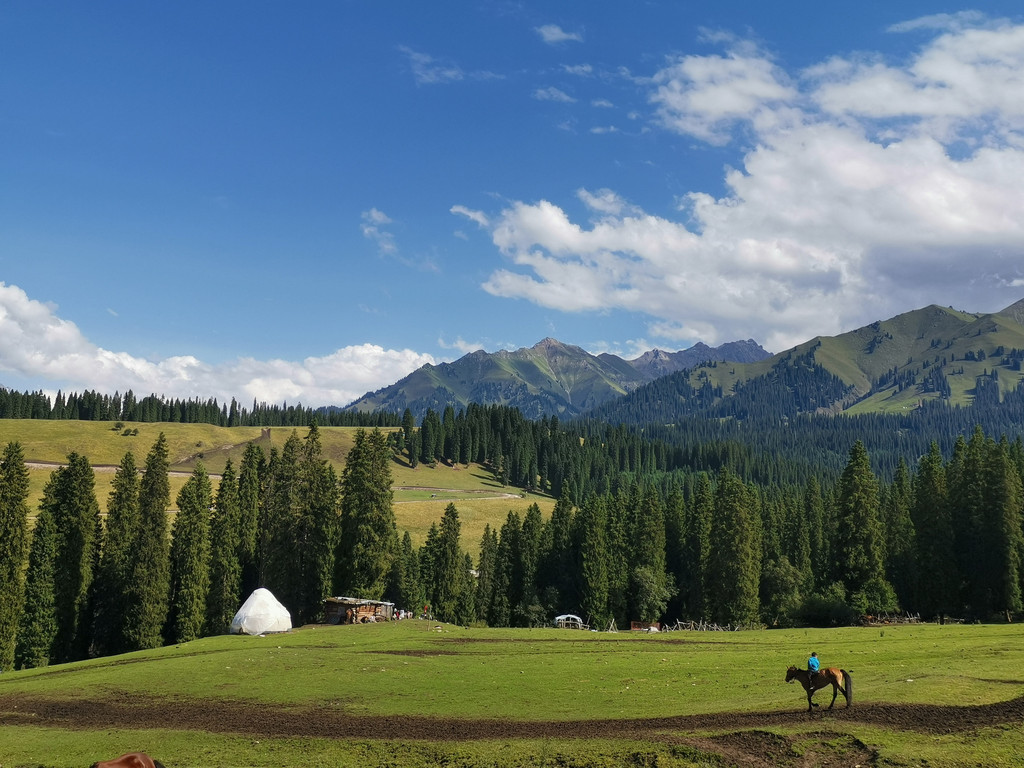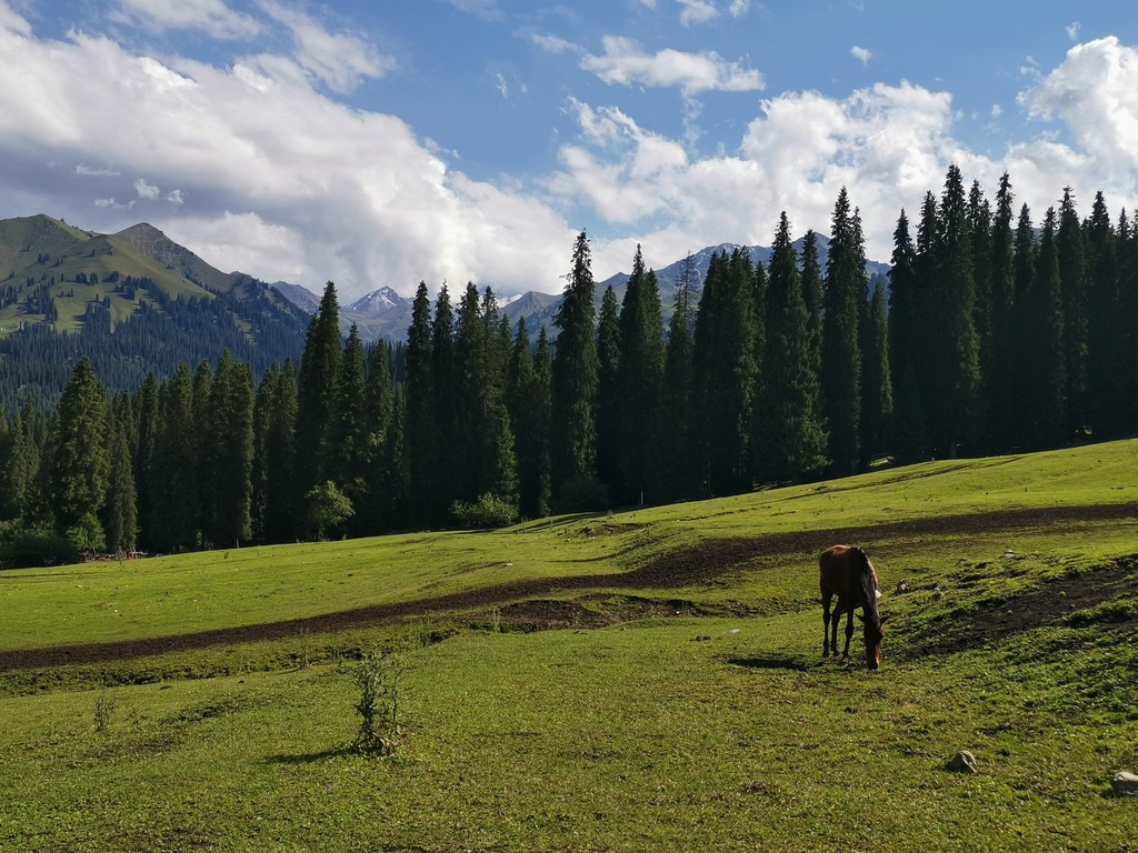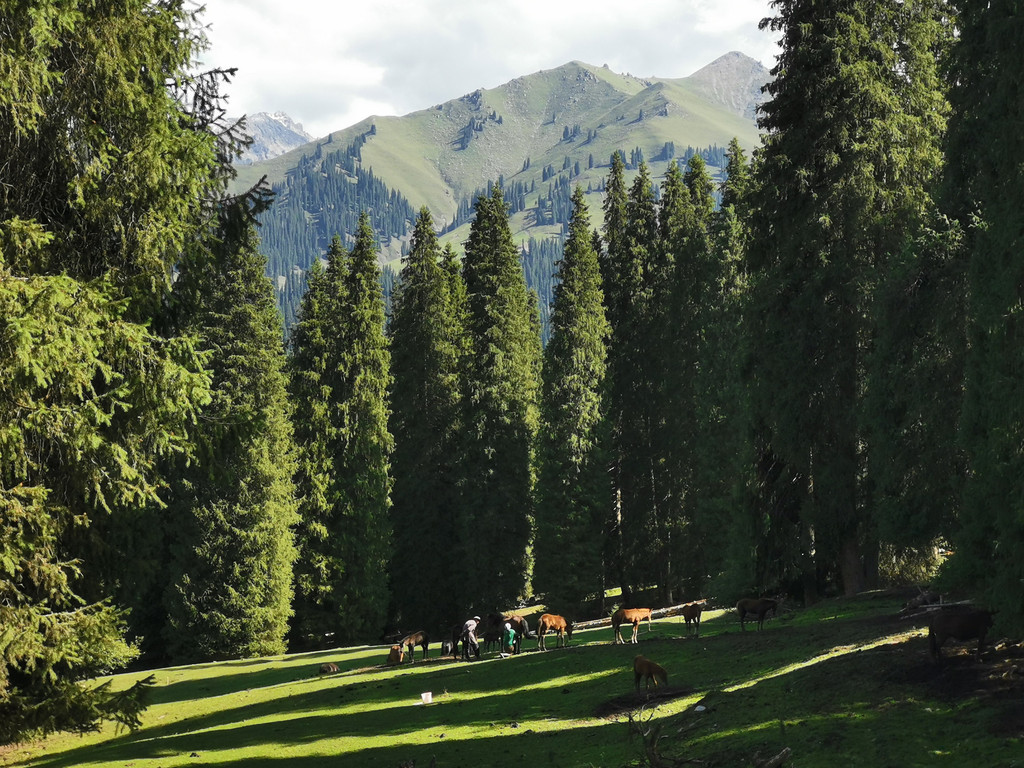 库尔德宁被称为是雪岭云杉的故乡,所以我更愿意称之为森林,而不是草原。或许新疆的草原本就是如此,有树、有草、有雪山、有溪流、有牛羊。
