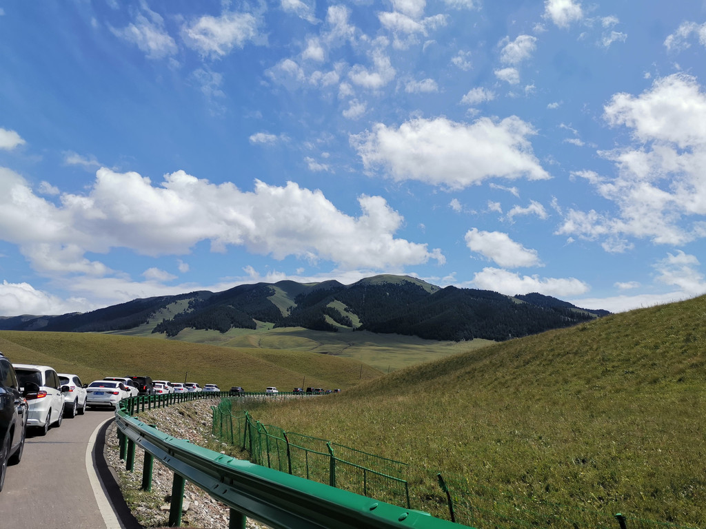 从区间车终点站到九曲十八弯观景台可以骑马,单程40元;可以坐电瓶车来回20元;也可以步行,约计40分钟。这里的坡度平缓得多,也是真正的草原样子,途中还能稍微跑一下,骑马的感受应该是挺不错的。
