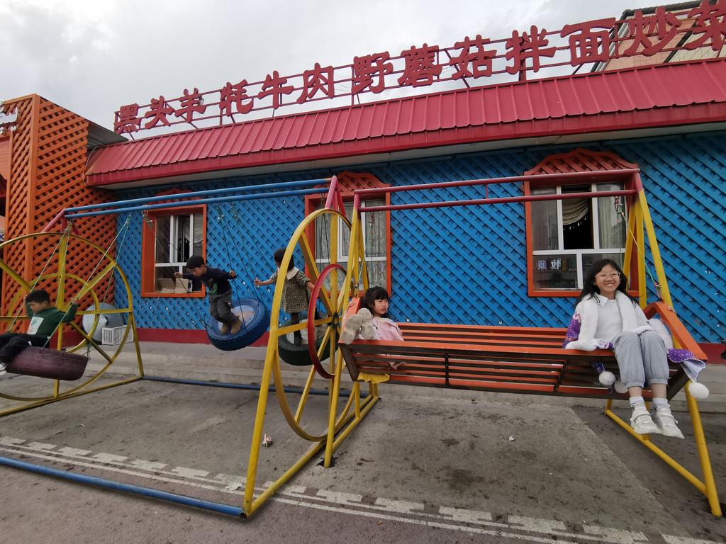 两点多到达巴音布鲁克,提前预订的蒙古包,满足孩子们想住蒙古包的愿望。稍事休息,找了一家川菜馆填饱肚子,然后到游客中心乘坐区间车。