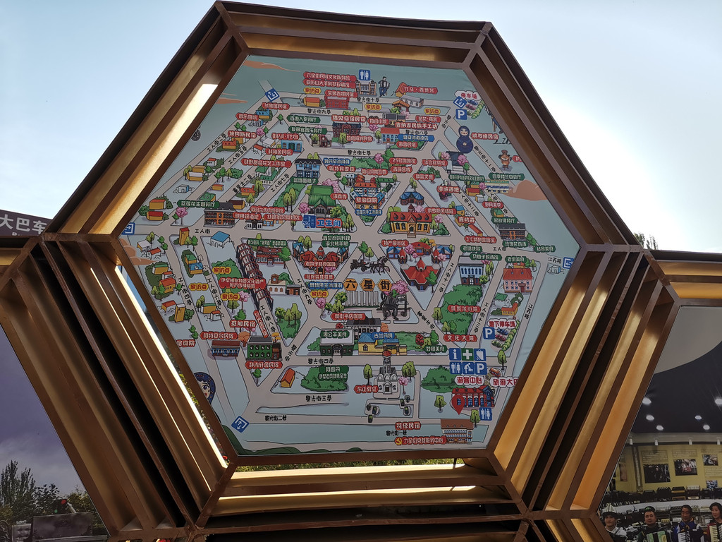 特克斯八卦城也是我国唯一一个没有红绿灯的城市。不过城市不大,我们住在最外沿,走到中间的太极坛大约20分钟左右,不像县城,更像是乡镇。想看八卦城全貌的,可以在太极坛上飞无人机。