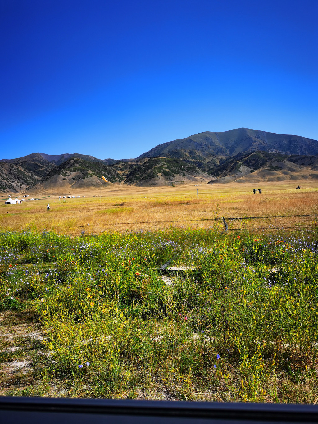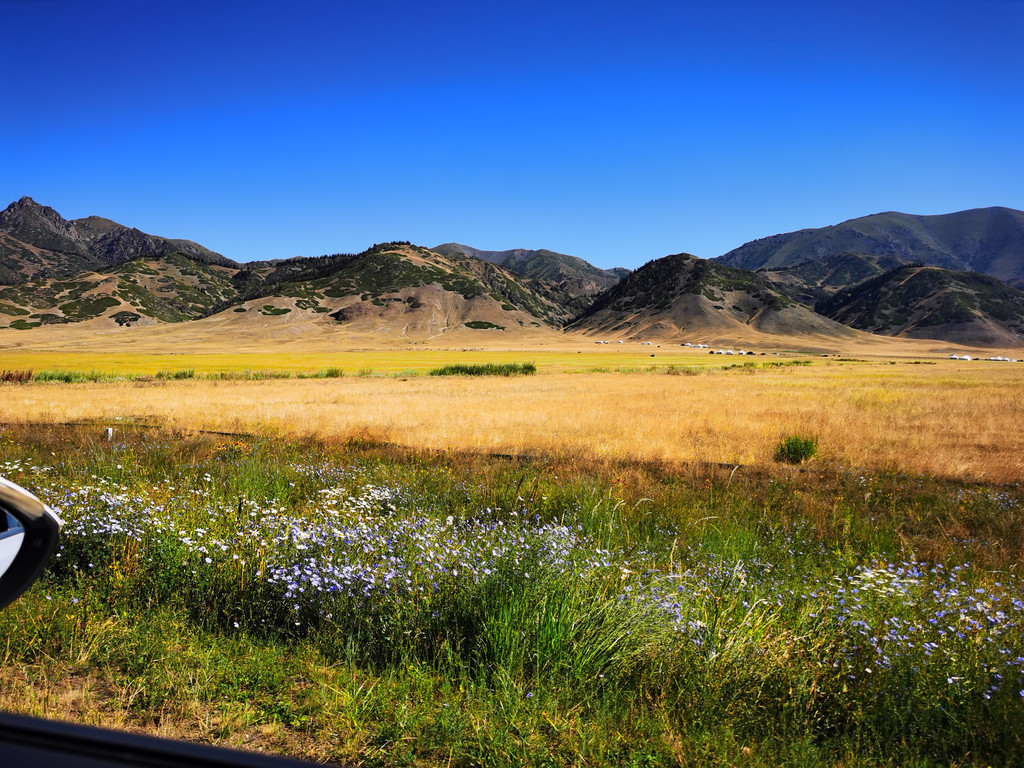 每到六七月份,湖边草原上开遍了各色的野花,惹得我总想停车拍上一拍。湖面海拔2071米,东西最长29.6公里,南南北最宽25.7公里,面积458平方公里,蓄水量达210亿立方米,湖水清澈透底,透明度达12米。赛里木湖原本没有鱼,1998年从俄罗斯引进高白鲑、凹目白鲑等冷水鱼养殖,2000年首次捕捞成品鱼,结束了赛里木湖不产鱼的历史,经过十年的发展,已成为新疆重要的冷水鱼生产基地.