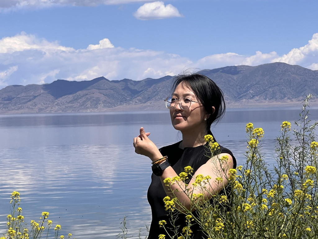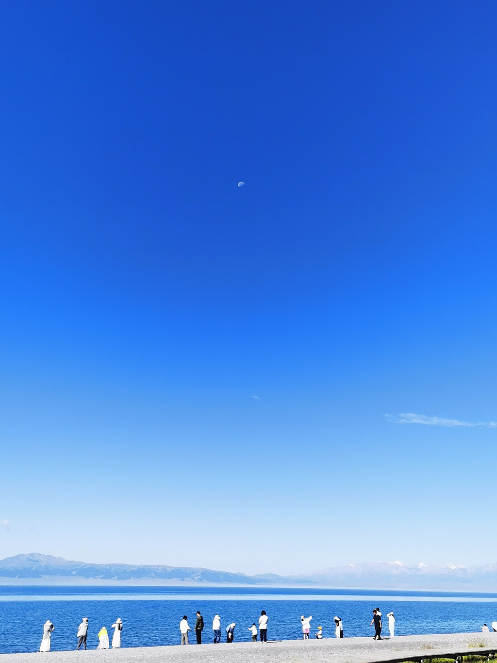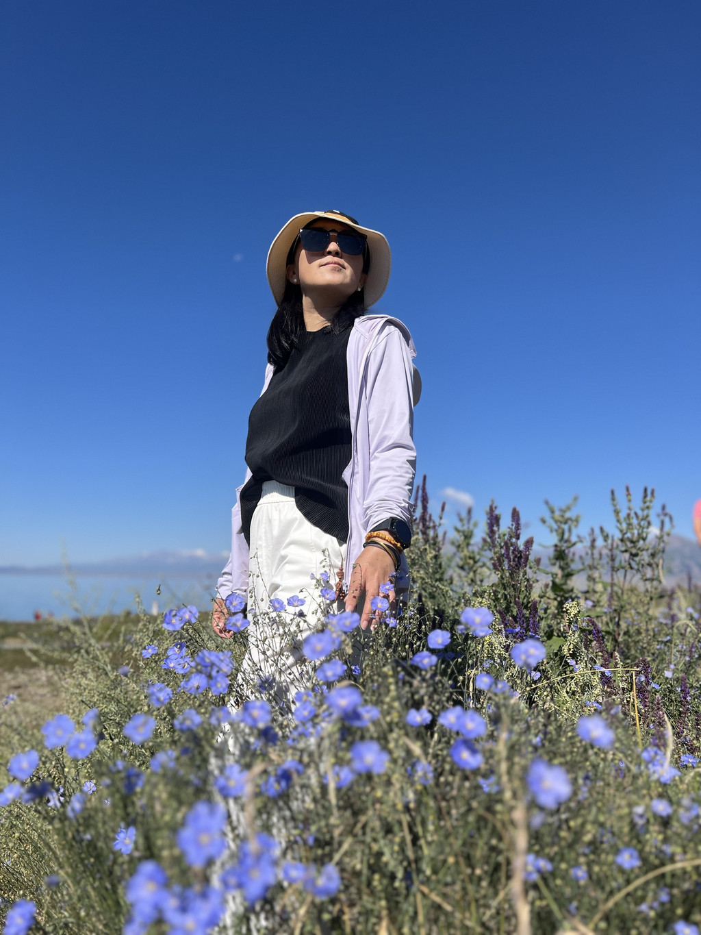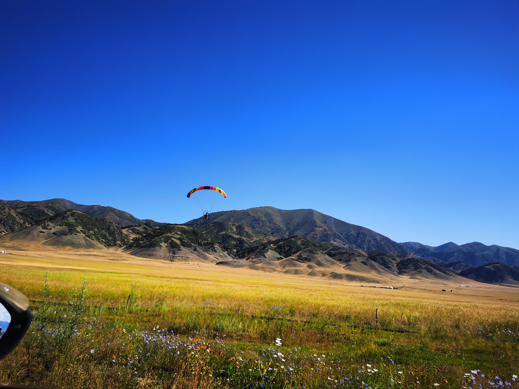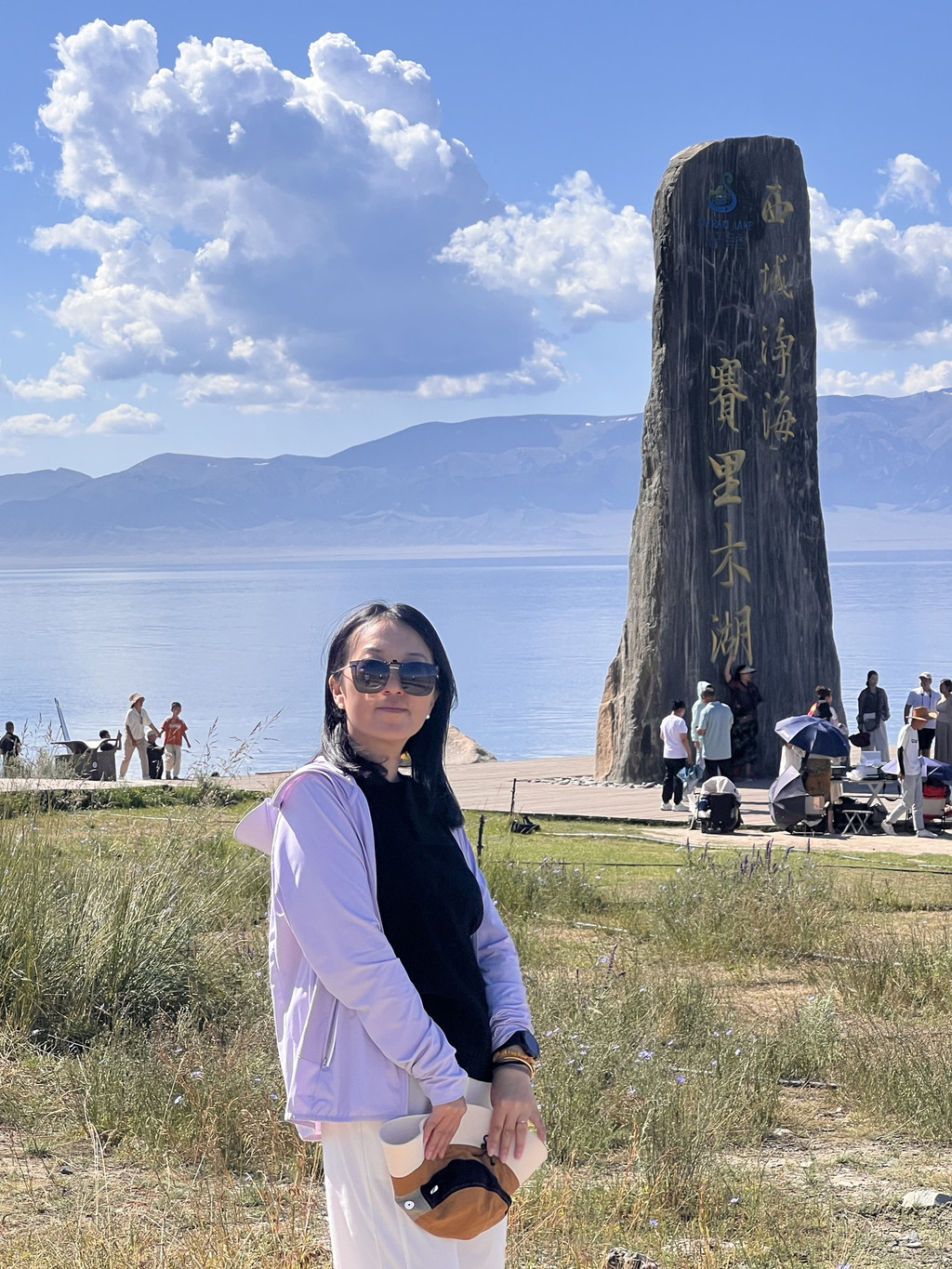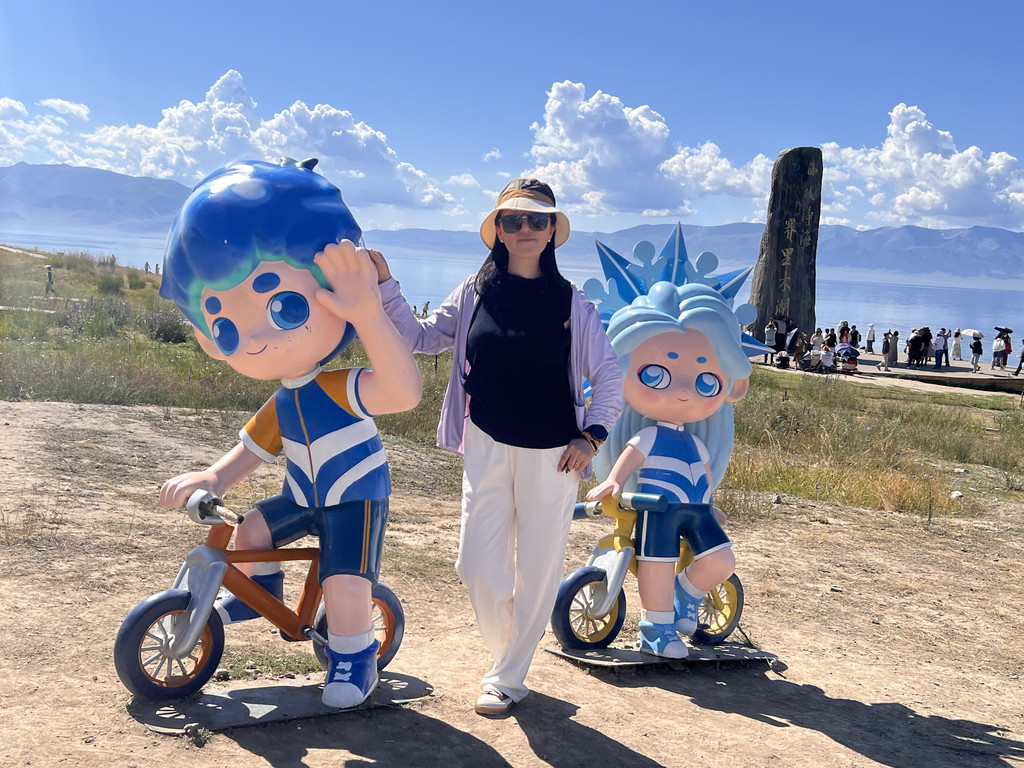 湛蓝的天空下一汪清水波光粼粼,映衬的草更绿了,花更艳了,沿湖绕行每一处景色都美的令人心悸,大片的薰衣草、油菜花,使人总想驻足拍照。路过音乐节的场地更是人山人海,热闹非常。环湖接近尾声之时我们还看到了一队超级拉风的摩托车队,太漂亮了,堪比一道风景。