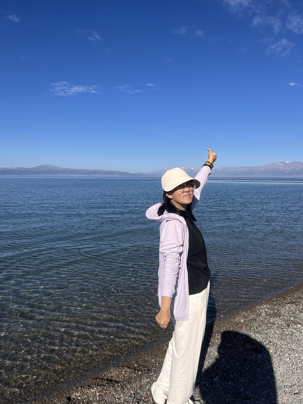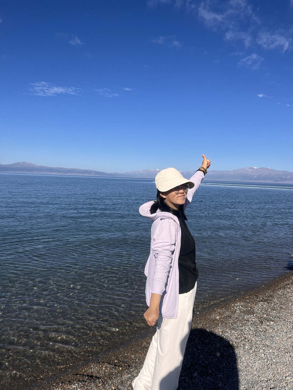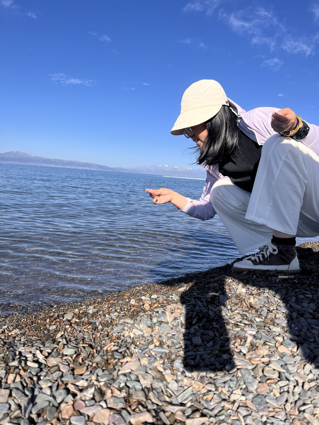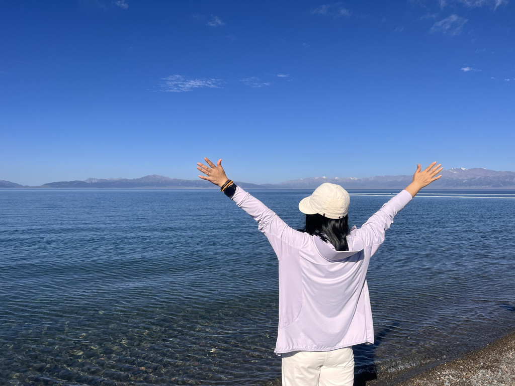 我们第一次停车的地方是“三台草原”,湖水异常清澈,里面的鹅卵石清晰可见,又忍不住捡了几颗。