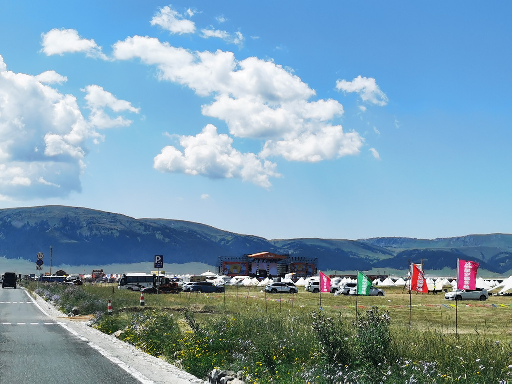 早上九点多准时入园,逆时针环湖游便拉开了序幕,这时我们也发现了景区内很多露营的,普通停车场、休息区,甚至草地上都有帐篷,我们还是太守规矩了,有点后悔。