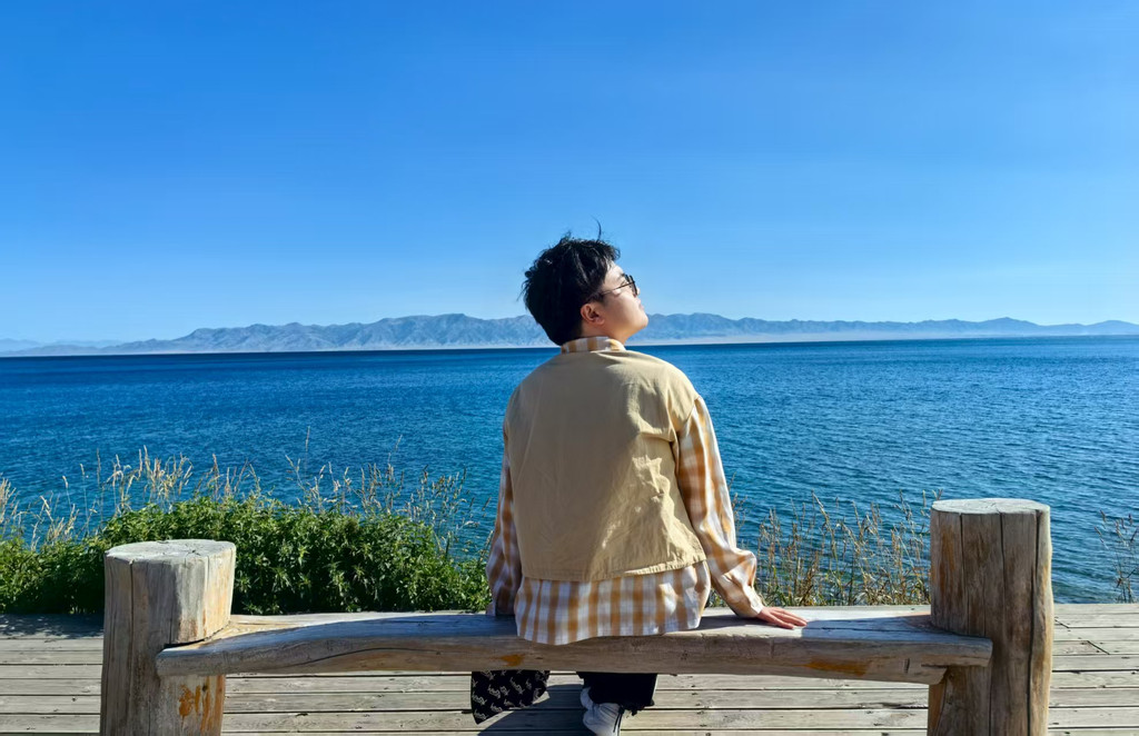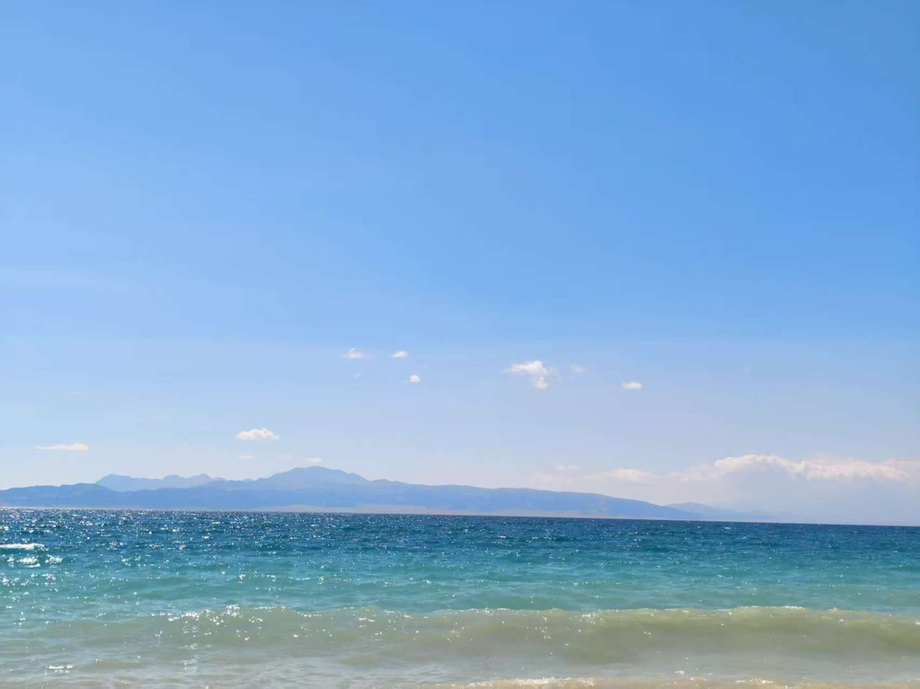 趁小伙伴爬山中,继续在湖边欣赏碧海蓝天。