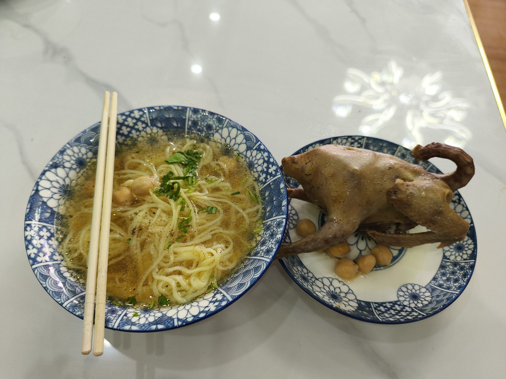 早上去吃了喀什的特色早餐鸽子汤面,汤的味道很鲜美,还有一整只鸽子,感觉都是一顿正餐了,他们说没有一只鸽子可以飞出喀什。