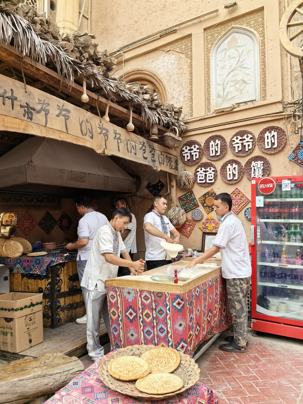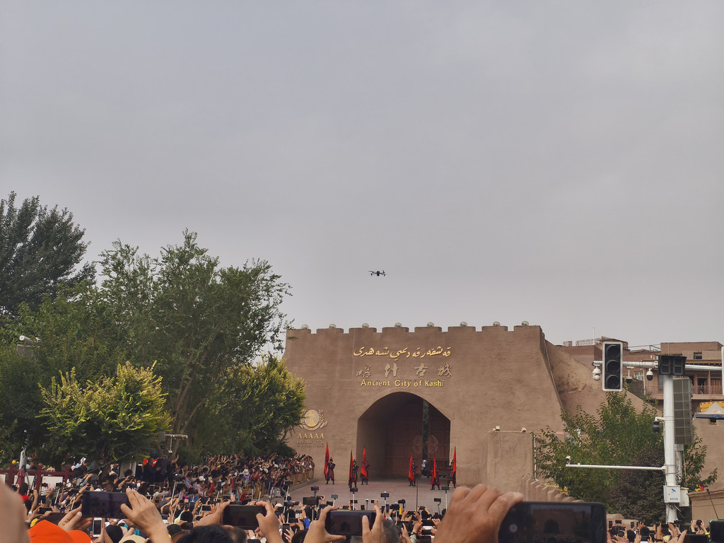 吃完早餐,就去看10点半喀什古城东门的开门仪式,已经是人山人海了,早上9点过就已经有人在那里排着了。站后面基本就是看别人的摄像头,也挺清楚的,一个接一个的表演带着观众走回那段历史,中原使臣出使西域、聪明的买买提等等,然后就开启古城之旅。