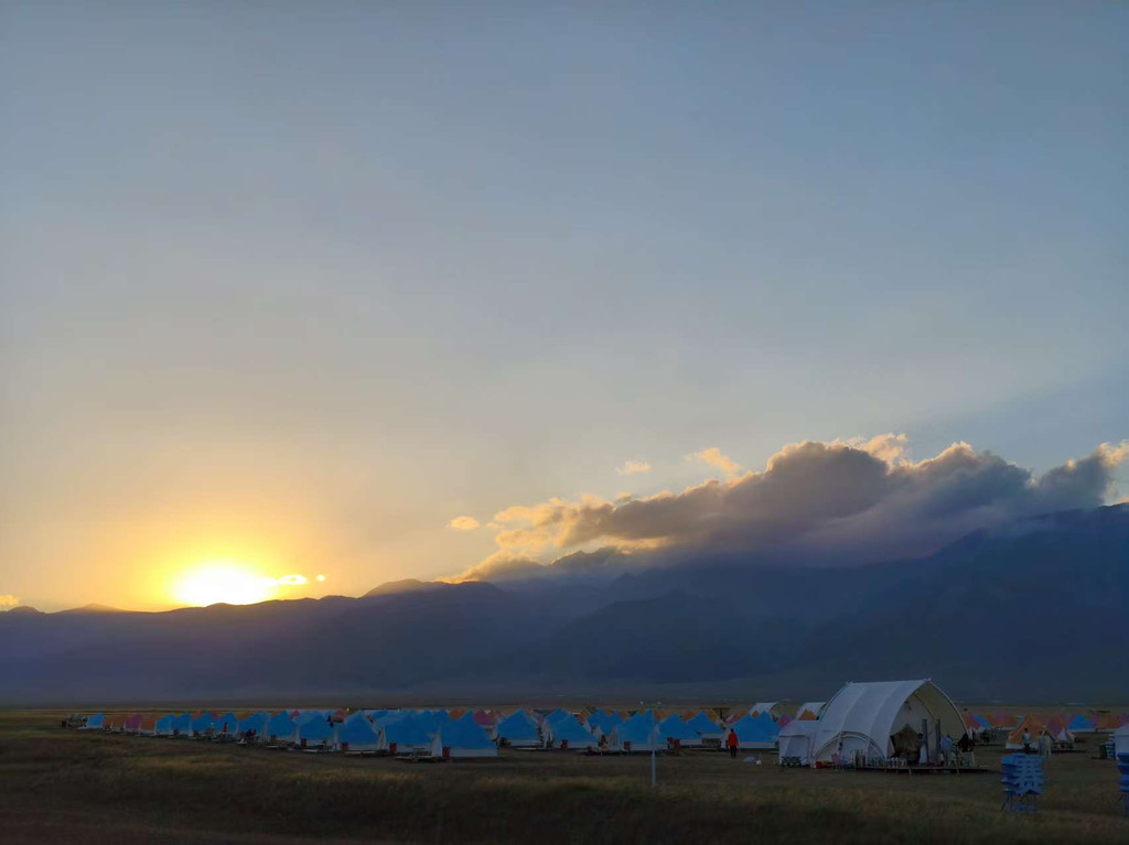 环湖一路走走停停,吹着徐徐清风,徜徉山水之间。沿途还有滑翔伞,想去拥抱天空的话可以尝试。晚上住的营地帐篷,没野营过的人开始充满期待。