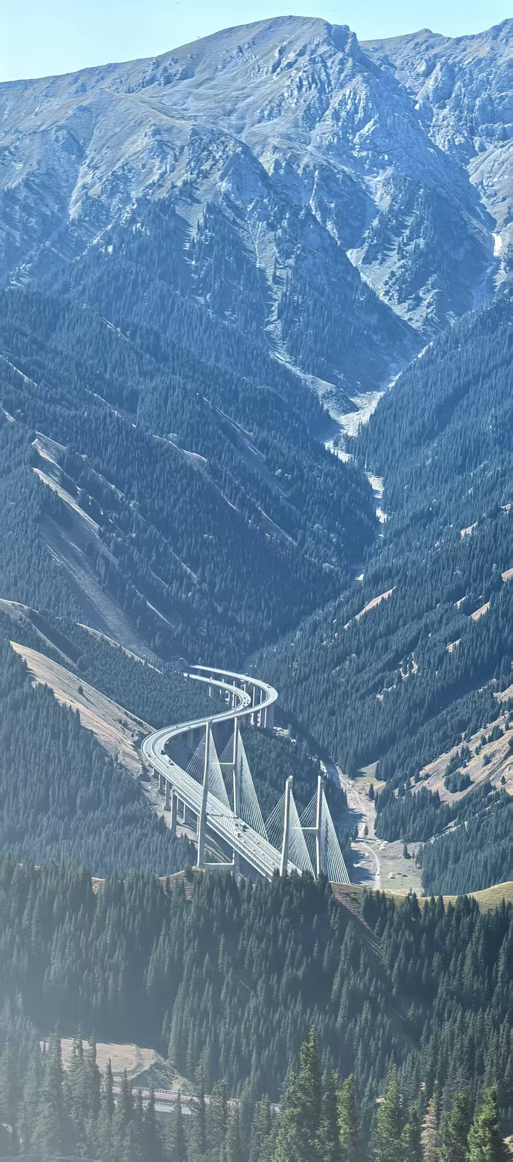 松树头作为有名打卡点,穿着增高鞋的我还是放弃了,小伙伴上去了等于我上去了。走完需要一个多钟头,上面可以看到赛湖和果子沟大桥全景。