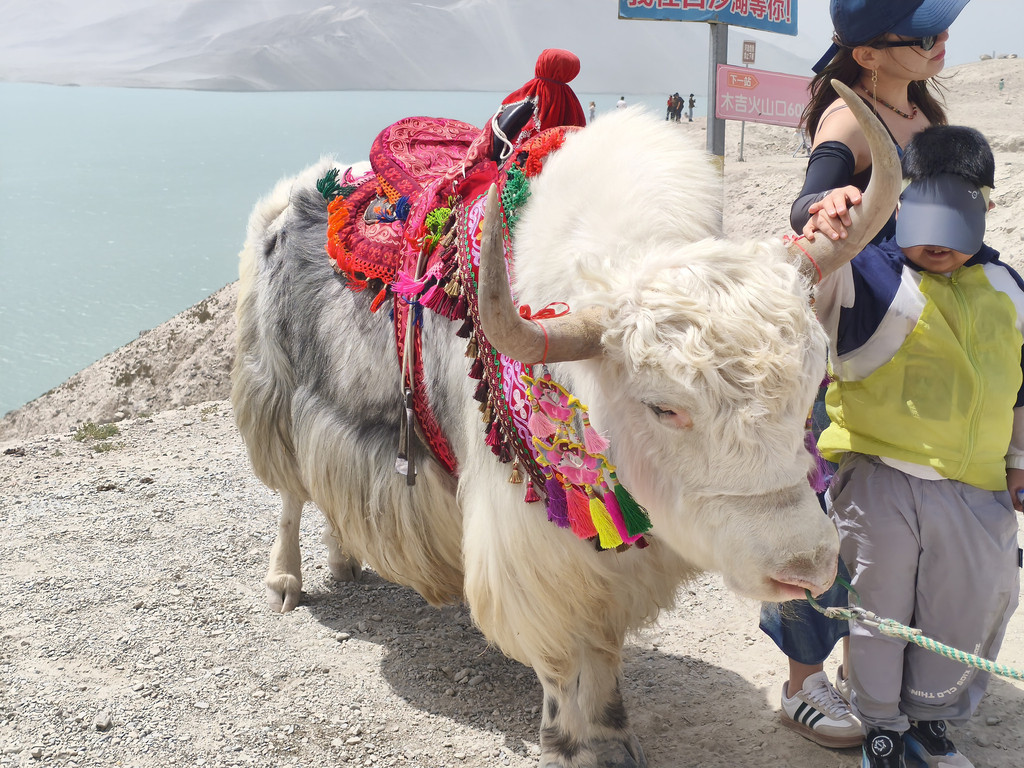去了白沙山白沙湖,也真的是对的起这个名字,风一吹,全是沙尘扬起来。去的是北岸(绝不是为了逃票,后来经过南岸观景台,感觉没打造完,还收40的门票,不值得),这里的牛牛都是在闭眼打工哈哈哈,风沙太大,赶紧溜了溜了。