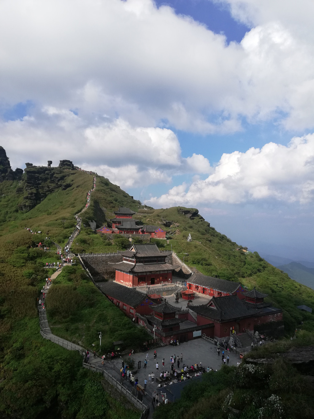 梵净山位于云贵高原向湘西丘陵的过渡地带,海拔2493米的金顶是武陵山脉的主峰。其山名来源于佛家的“梵天净土”,这里曾是弥勒佛的道场,香火鼎盛,不过现在到此一游的游客远多于朝圣的香客。梵净山被誉为第五大佛教名山,但与我去的其它四座佛教名山相比,其文化底蕴实是名不相符,偌大的山上就没见几座寺庙。