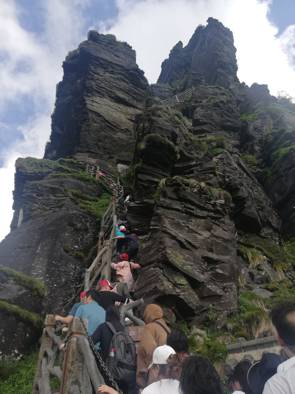 发往梵净山的班车在印江新客站,但在游客少的情况下,在距山门30公里的地方就不再向前了,你得打旁边停靠的接地车去景区护国寺西门,当天只有我和一个武汉的游客二人,每人付了50元的车费。梵净山的门票下午三点之后不再开售,你得提前在官网上订票,赶三点之前入园。总之,这条路线不是太成熟,中间颇多坎坷,如果不是为走非寻常路,且未做攻略的情况下,建议你还是从东门上,东门下,体力好的情况可从万步云梯而上,然后坐索道而下。我在旅行途中就听到一对72岁的辽宁夫妻步行上山。