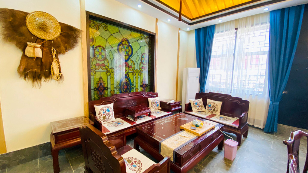 渔舟民宿有一个大客厅,自然光透过小窗照进主厅,旁边便是舒适的休息区、渔舟餐饮区,点几份渔舟特产美食,喝点小酒,最是惬意。