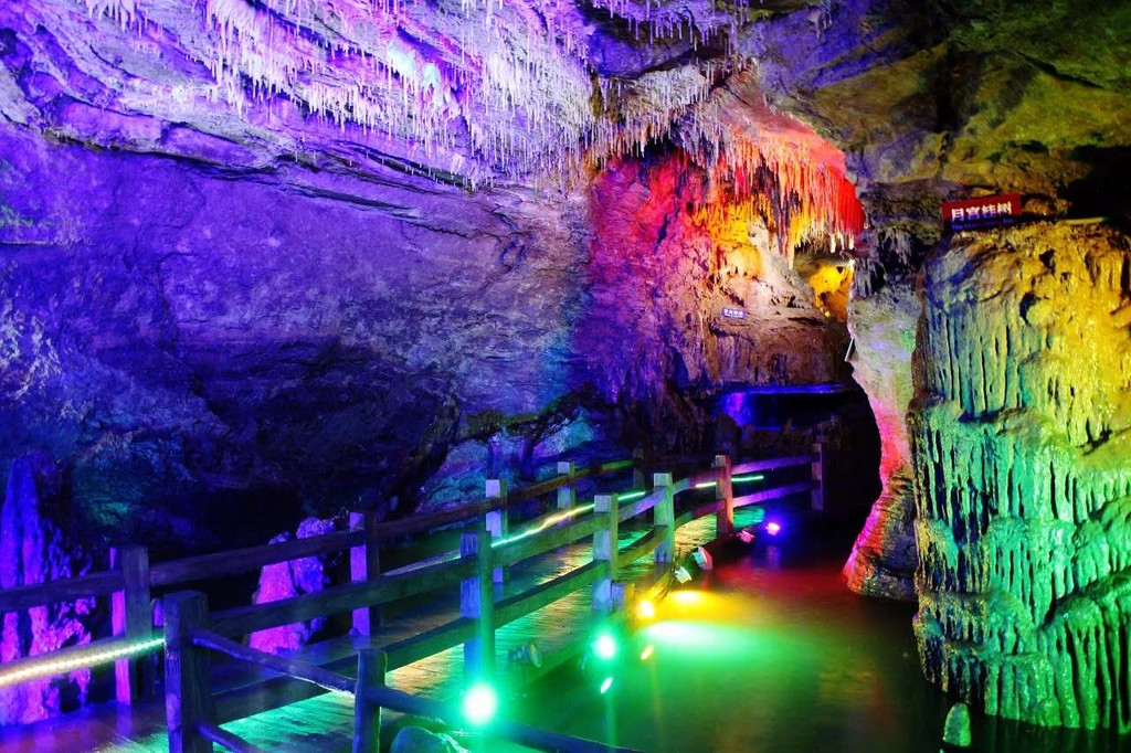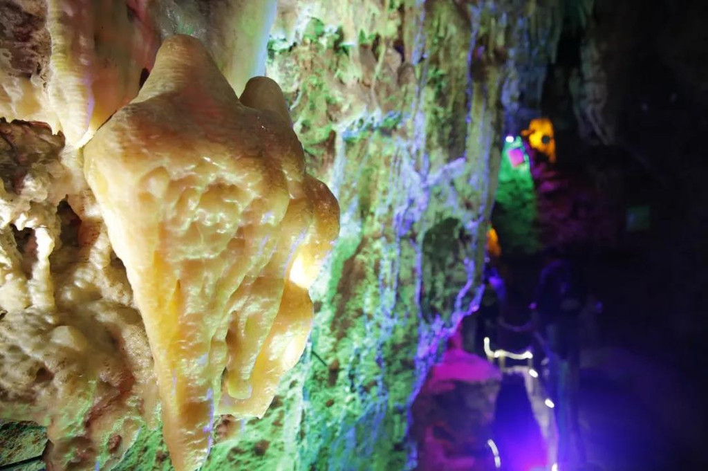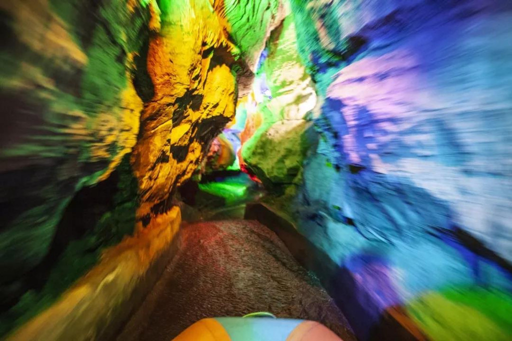 漂流:地下河水的漂流,直接将你从洞中送回到室外。看着散发着荧光的墙面,刺激。