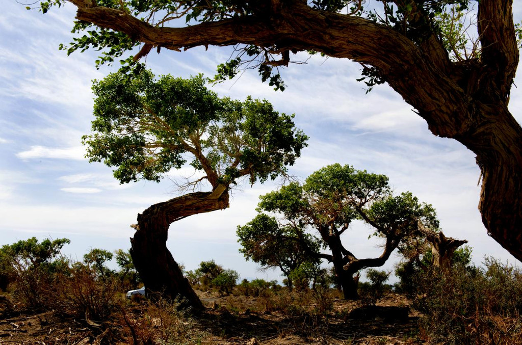 然后,我们来到了伊吾胡杨林,这也是我此行最为期待的地方。伊吾胡杨是世界上仅存的三大原始胡杨林之一,也是中国境内面积最集中、年代最古老、树形最具特色、道路通达条件最好的原始胡杨林。这里的旱胡杨亲年不死,死后千年不倒,倒后千年不朽,历经岁月,生生不息。