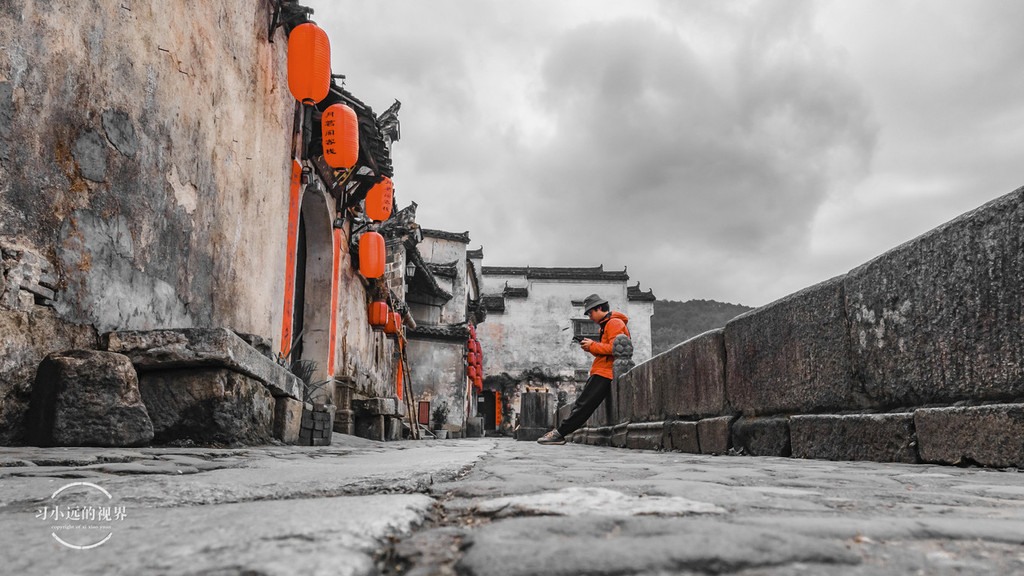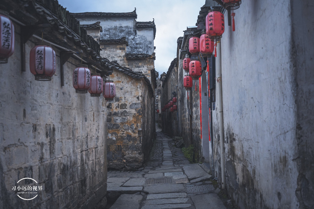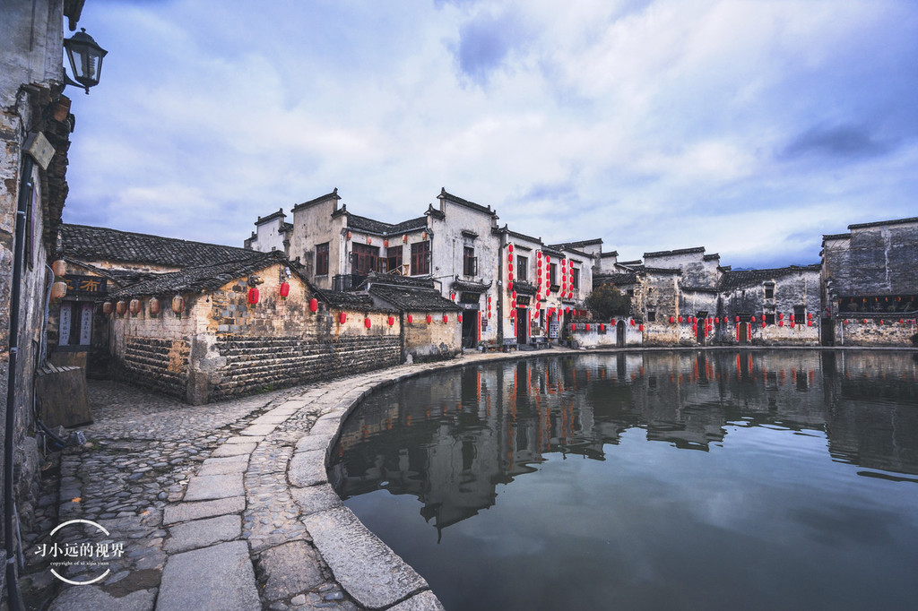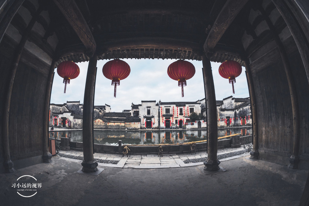 正月里宏村,除了水墨色,还有那一抹抹激动的红: