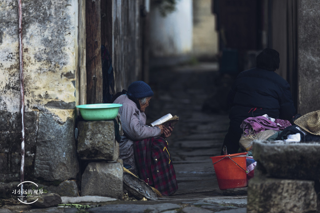 走进村子里,让我印象最深刻的便是这个场景了,想来一个年岁近百的老人还在捧着书读书,真的让年轻人汗颜。读书是一件活到老,学到的事情。