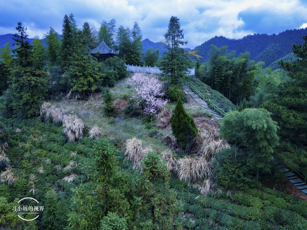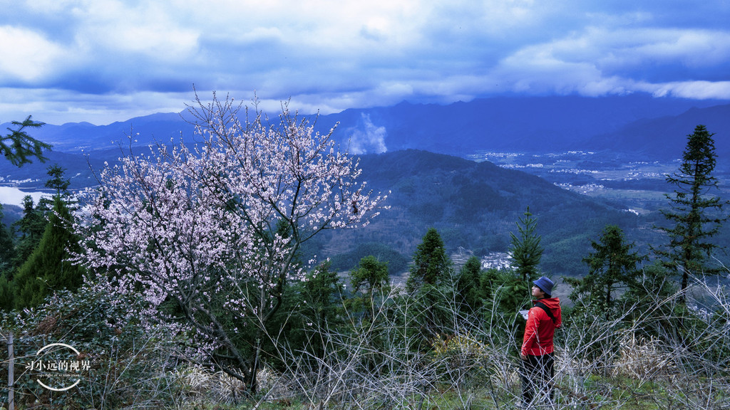 当然这个季节百花盛开,站在这里的观景台上也能卡带远处油菜花开放的盛景。刚好在观景台边上还有一树盛开的桃花,看着是比较孤独,确是非常应景,总有一种想拍个合照再走的感觉。