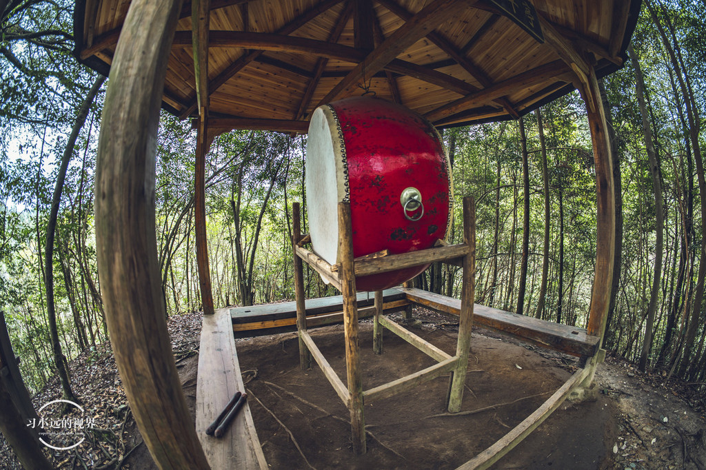 既然叫打鼓岭,在爬到高处的时候还看到一个鼓,游客都会好奇的敲上几下,边上还有个牌子写着几句打鼓的吉利话。