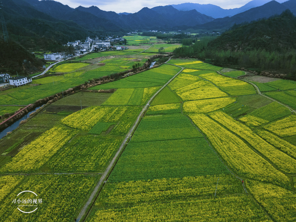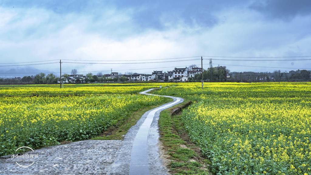南屏除了看古村落民居和建筑文化,这里每年油菜花开的时候,进村都会路过这里的网红S弯,是个不错的拍照打卡地,S 形的小路把金黄的油菜花分割开来,远处是白墙黛瓦的徽派建筑。