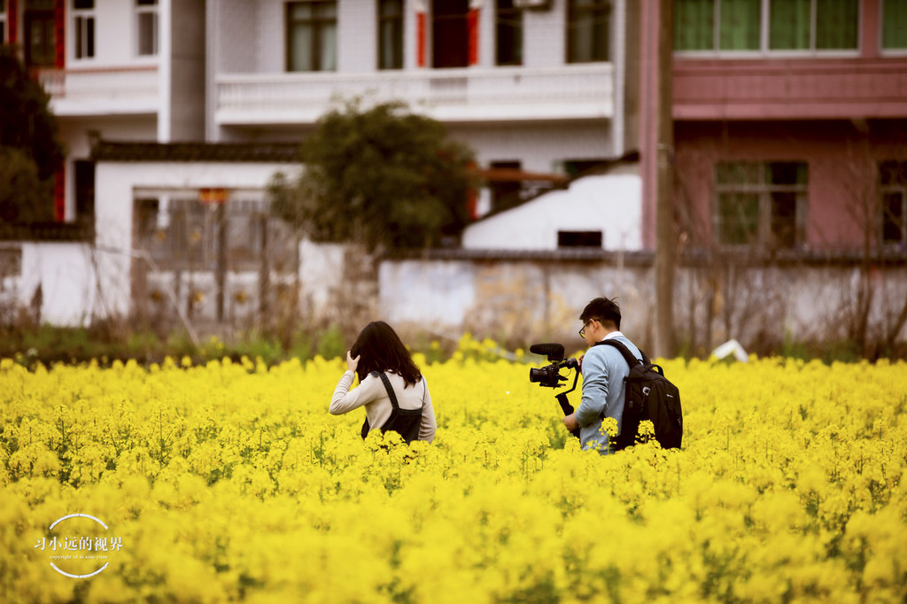 如果要在油菜花田里拍摄,不妨选件颜色比较显眼的, 比如 橙色或者红色,找一条小路走进油菜花田里。或者带着无人机,就可以拍更多的大场景。