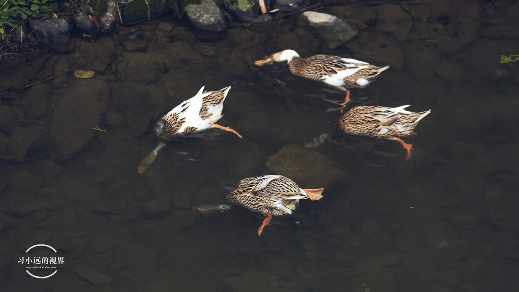 可能对于细致的说法,不查资料知道的人不多,现在游客来这里也基本都是看木雕楼。相比于距离不到千米的宏村,卢村这里显得有点默默无闻。卢村并不大,整个村溜达一遍估计一个小时就走完了,整个村子有一条小河穿村而过,顺着河道能看到不同的简易小桥连接着小河两岸,桥头路口闲聊的村民,在桥下是冼菜洗衣的女人和成群结队的鸭子。 闲适地生活按部就班地进行着,村庄依旧是他们的村庄。高堂阔院的老宅子,在村子里并不鲜见,沿河走不多远就能看见坐落在河边的卢家老宅。