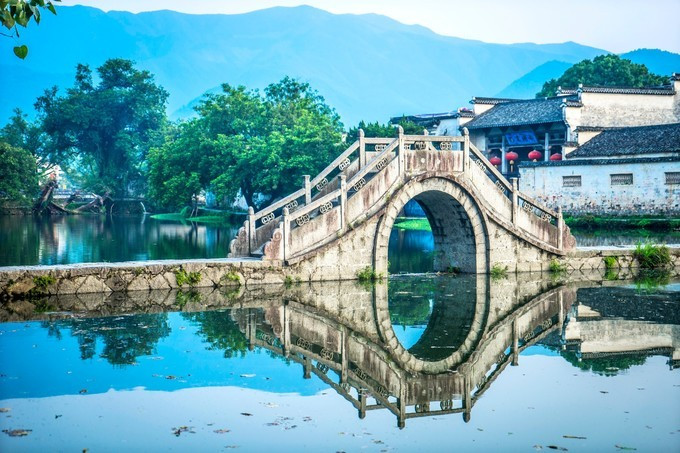 走进宏村,最亮眼的便是这座“画桥”,它或许是宏村出镜最多的景点,青石而筑,桥身桥栏经风沐雨后已斑驳陆离,弯得略显夸张的桥洞勾勒出淡淡古意,青衣苍面,印着光阴掠过的痕迹。
