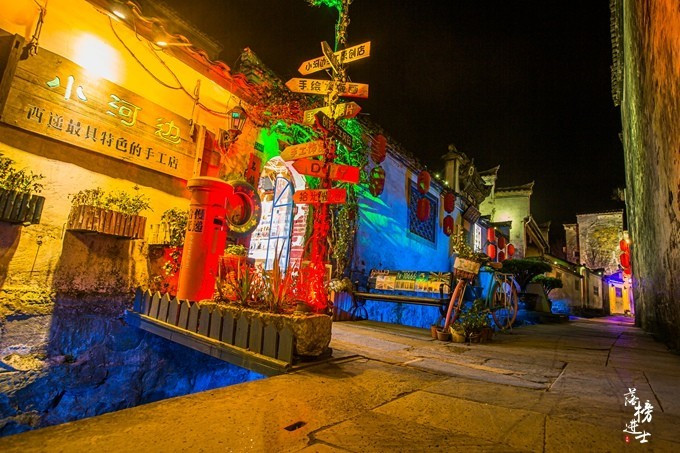 夜色下西递的韵味在光影的绚烂中氤氲而出,是一曲舒缓、 优雅、美妙的乐章,也是一幅低调的水墨丹青。