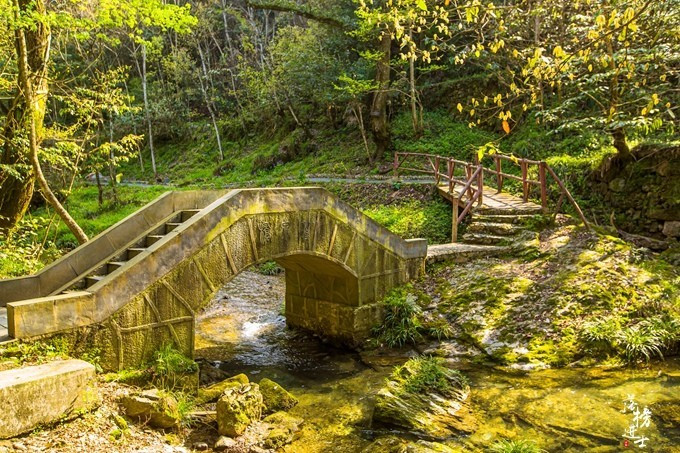 溪水潺潺,芳草萋萋,古树悠道。仲春时节,气温刚刚好,游人不多,安静、舒适、自然,正好适合呼朋唤友或者一家人游玩。