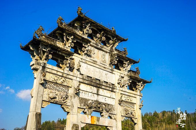 如果是西递的标志,那么村口的古牌楼就是其中之一了。这座高大的“ 胶州 刺史”古牌楼建于明朝万历年间,是为明朝西递进士胡文光所立的牌坊,在牌楼上面刻有“恩荣”二字,牌坊上还雕刻了文官、武官、各种动物等题材的图案,充满了丰富的寓意故事,很多人来到西递村的时候都会在这座高大的牌坊下合影留念。