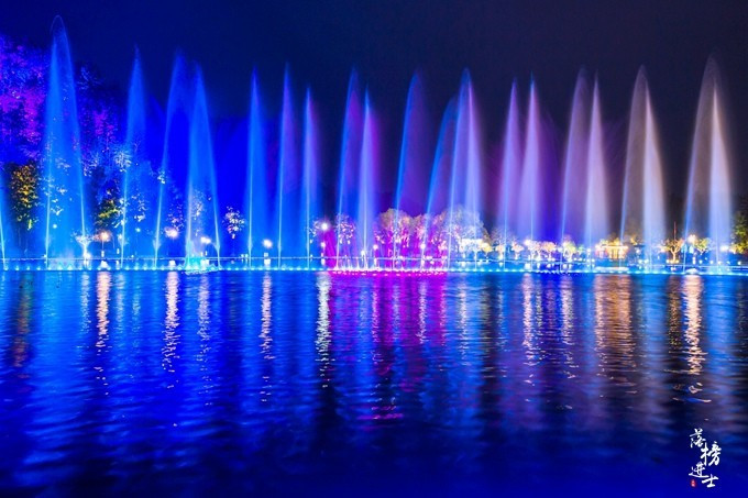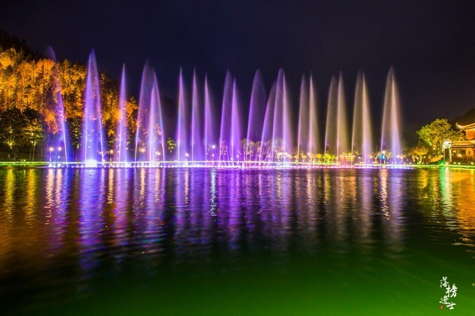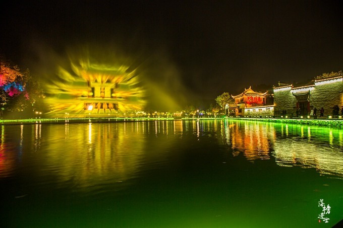 西递景区现在每天晚上都会上演西递传奇大型水幕灯光秀,美轮美奂的灯光夜景也吸引了众多游客的观赏。喷泉随着音乐节奏的律动不停变化形状,独属于西递古村的夜景灯光秀开始了,水柱被霓虹灯染上绚丽的色彩,呈现出各种模样,有时如随风摇曳的丝带,有时又组成盛开的花朵。