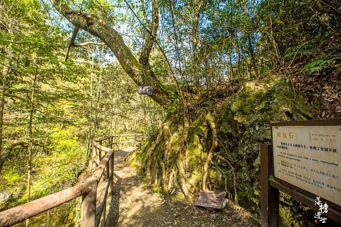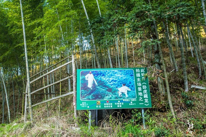 《卧虎藏龙》取景地有明确的标识。一路走来,发现山上并非只有竹,还有许许多多叫不上名字的树木,全部郁郁葱葱,让人心旷神怡。
