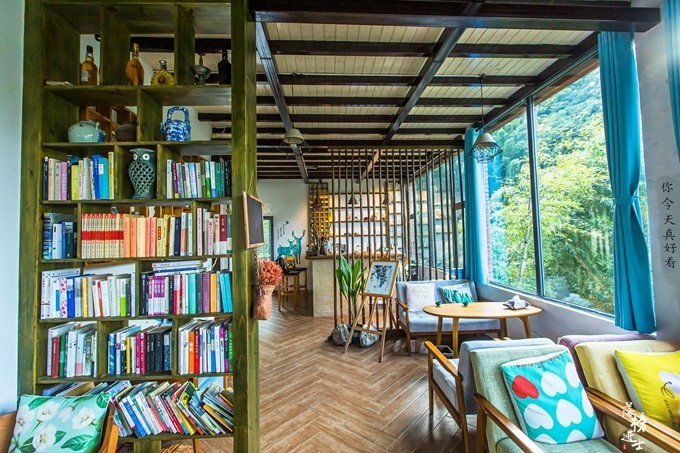 临窗而坐,阳光温暖而和煦,转头便是漫山遍野的竹子,安静的氛围让人只想点上一杯茶,坐在山间放空一切。