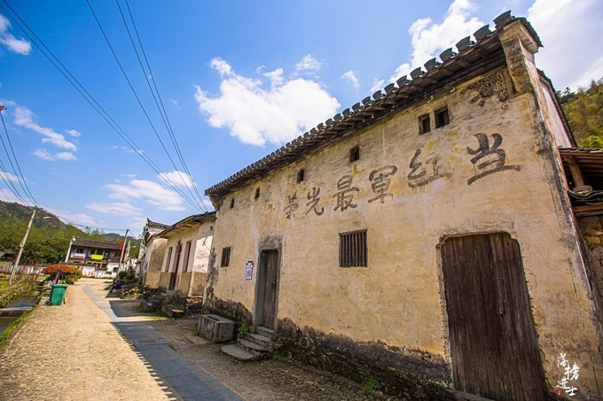 旧时的标语依然留存在方志敏纪念馆的墙壁上,坐拥着好风景的柯村,同样有着熠熠生辉的红色光芒。