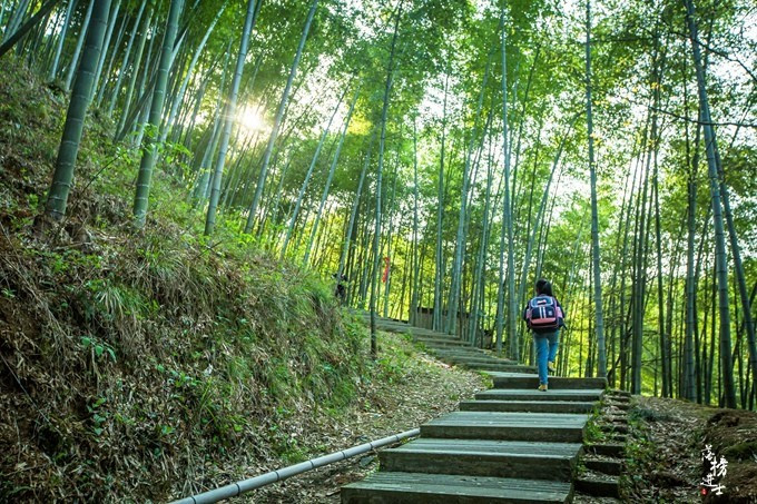 置身竹海之中,竹林就在身边,足够葱茏。一步步向上走,台阶轻缓,丝毫不觉气喘。舒润的空气充满喉咙,伴随着满眼绿色的清亮,让人有一种被绿水青山紧紧包裹的感觉。