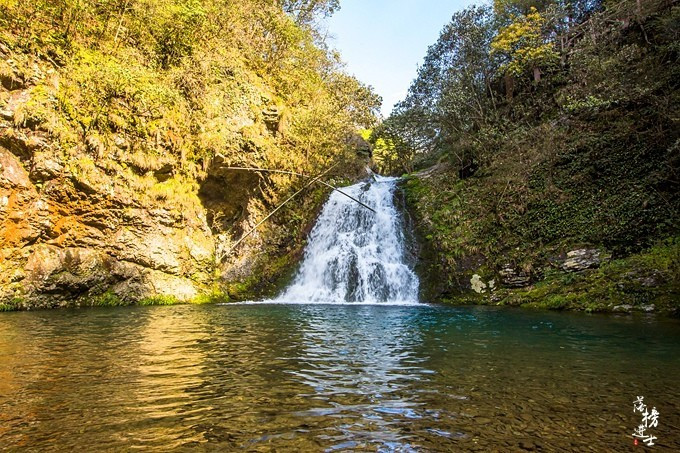 瀑布多,自然深潭多,走一段路就遇到一个潭,潭水清澈,泛着诱人的青绿色,有种山光明净,深潭倒影,心境空灵的意境。
