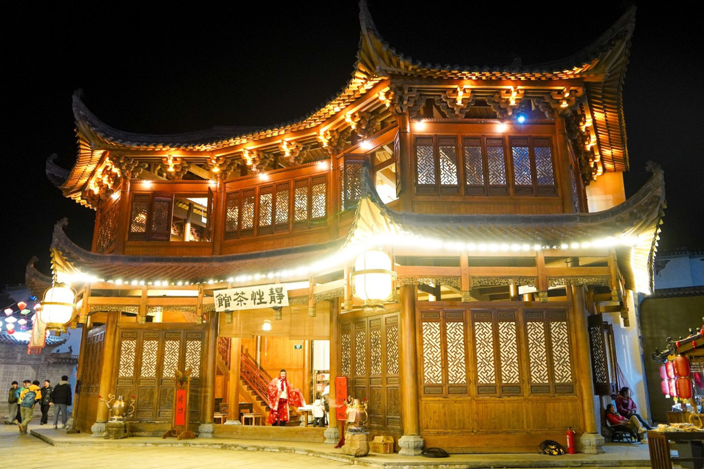 夜晚的宏村更是别有一番风味。月色朦胧,灯火阑珊,古建筑在夜幕下更显静谧和神秘。此时,可以坐在湖边的小亭子里,品一壶香茗,听一曲悠扬的古乐,让身心都得到彻底的放松和享受。