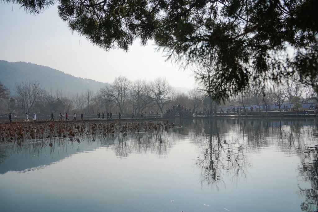 午后,我来到了宏村。宏村的湖光山色令人惊叹,就像是一幅天然的水墨画。我坐在湖边,静静欣赏着这份美景,感受着大自然的馈赠。湖水如镜,山色如画,一切都显得那么和谐、那么美好。