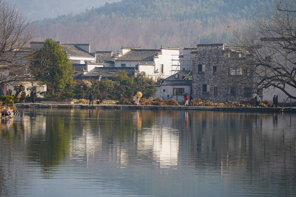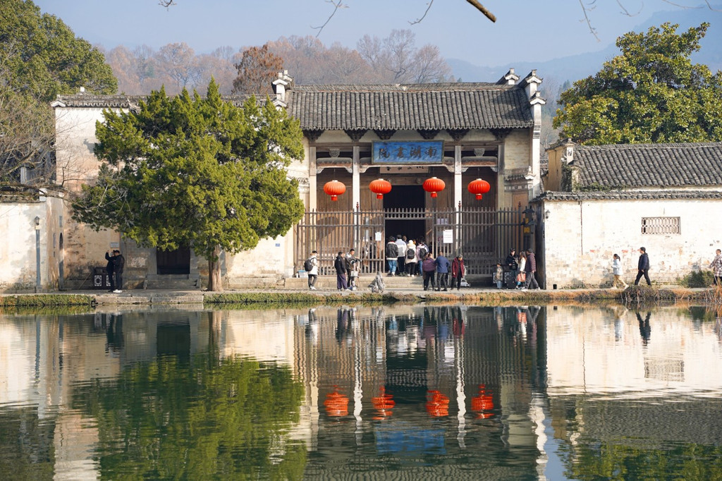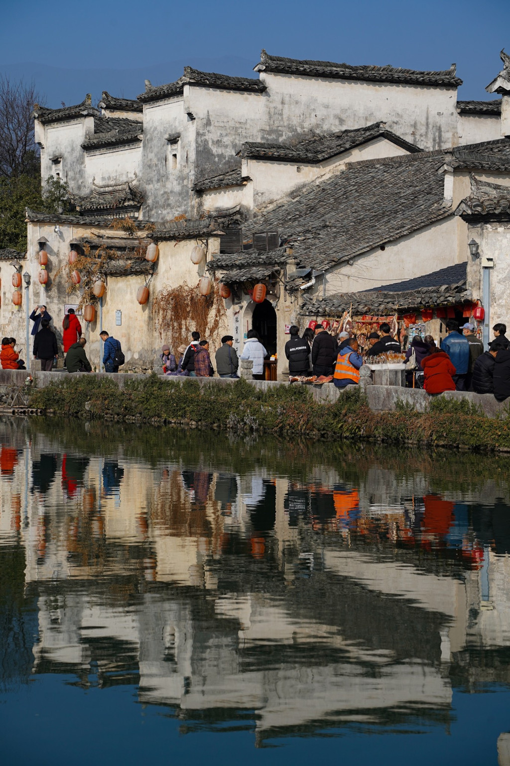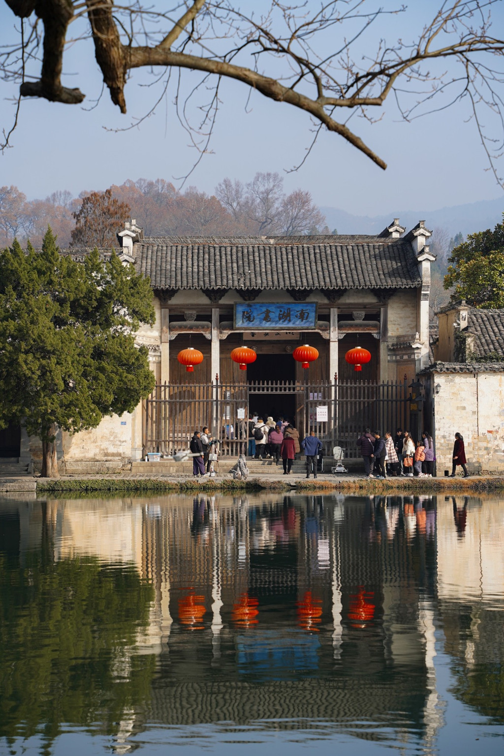 踏入宏村,首先映入眼帘的是那碧波荡漾的南湖。湖面如镜,倒映着蓝天白 云和 周围的古建筑,美得如同一幅天然的水墨画。沿着湖边漫步,不时可以听到潺潺的流水声和远处传来的鸟鸣,让人不禁陶醉其中。