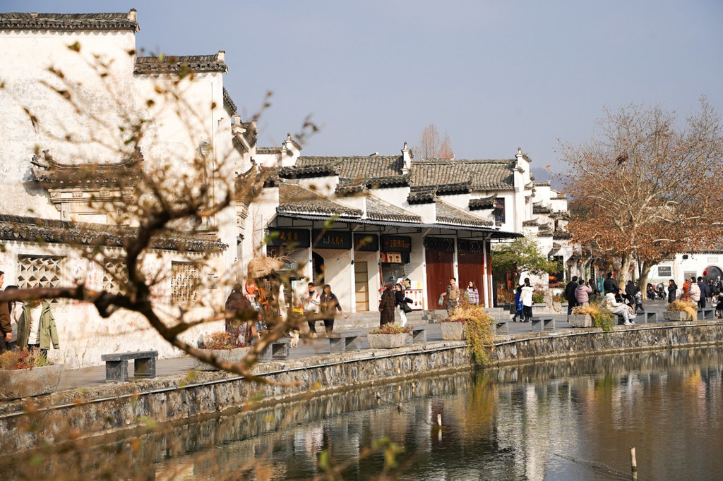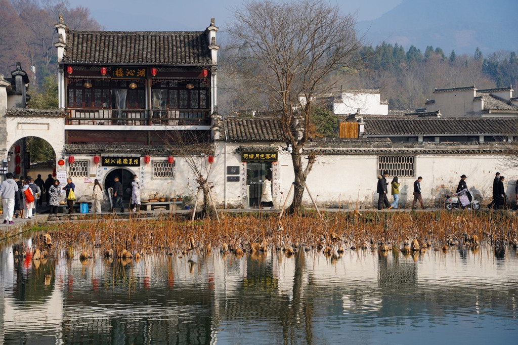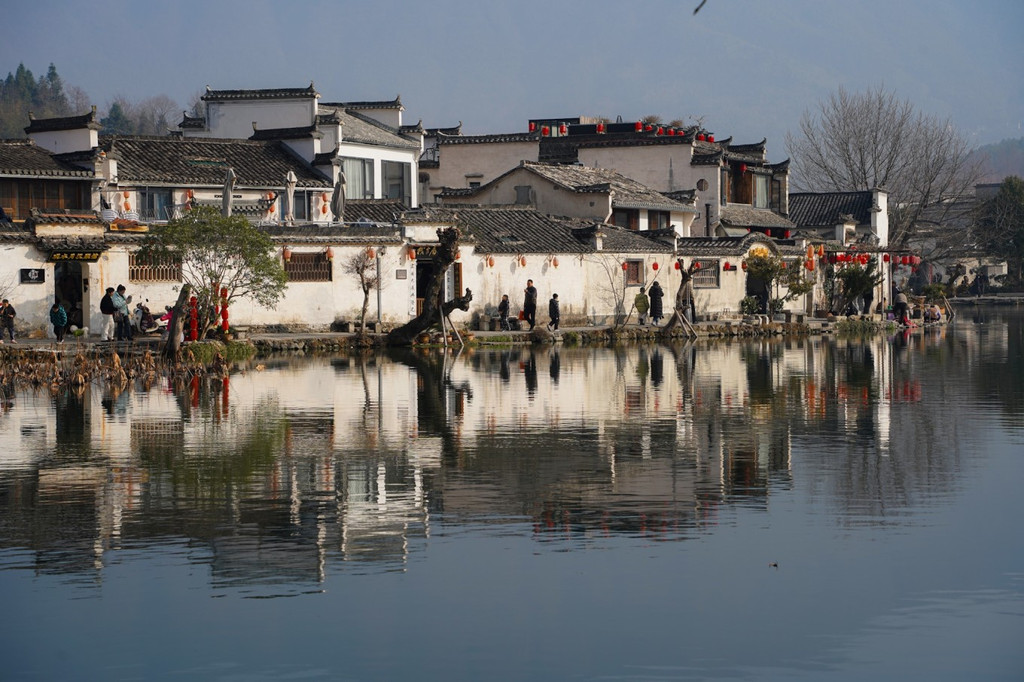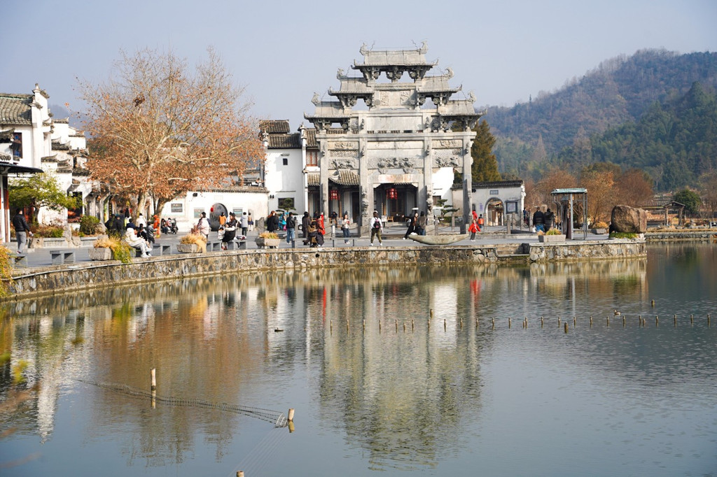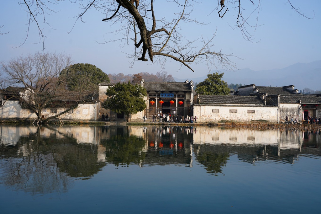 踏入宏村,首先映入眼帘的是那碧波荡漾的南湖。湖面如镜,倒映着蓝天白 云和 周围的古建筑,美得如同一幅天然的水墨画。沿着湖边漫步,不时可以听到潺潺的流水声和远处传来的鸟鸣,让人不禁陶醉其中。