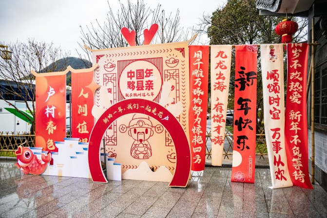三、2024.2.6——2024.2.17 ,游客凭到达黟县高铁东站纸质车票,并在黟县东站打卡发任一主流社交平台,参与高铁东站现场红包抽奖活动,奖品包含三方面内容:住宿抵扣券、五黑礼品抵扣券、黟县红火三件套文创产品(均含楹联祝福语)。