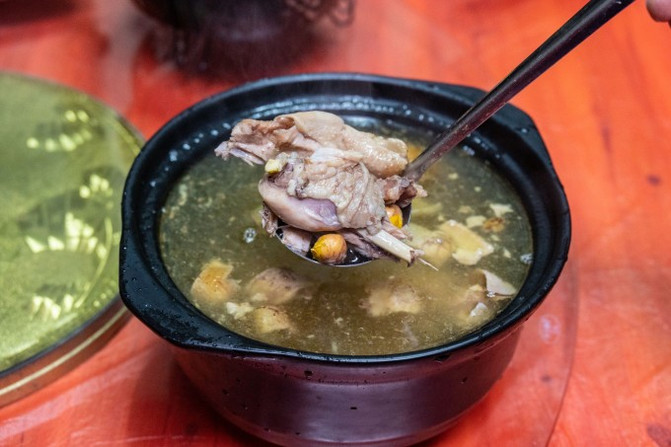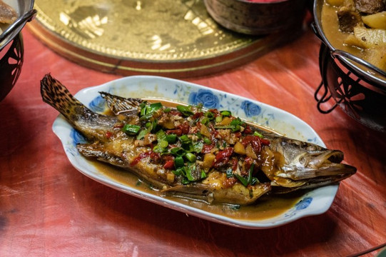 吃饭就在正厅的大圆桌,菜品是地道的徽州农家菜,有土鸡汤、臭鳜鱼、梅干菜烧猪蹄等等,连米饭都是有锅巴的柴火灶烧出来的。正厅还放了一种由木澡盆改良而成的老式烤火座椅,这些都是徽州人家最真实的模样。