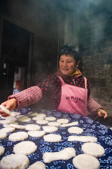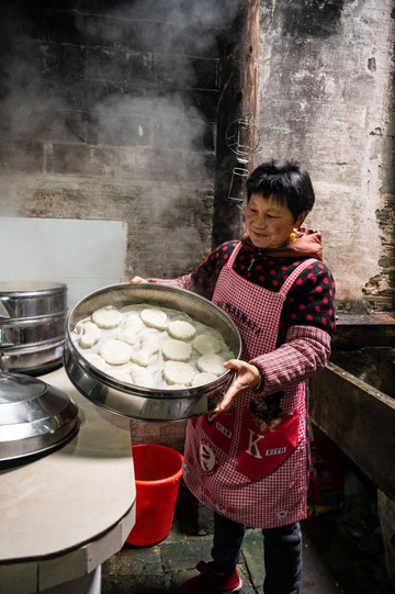 如今的南屏不如县内的西递、宏村名气大。不过正是因为这样。来南屏,更容易感受到当地人的生活。春节期间,也更容易拍到徽州古村真正的年味。我在景区的农家吃饭,遇见老两口正在打食桃(类似于当地的年糕),拍到了整个制作过程。并且在征得同意的情况下,亲自上手参与了一下下。