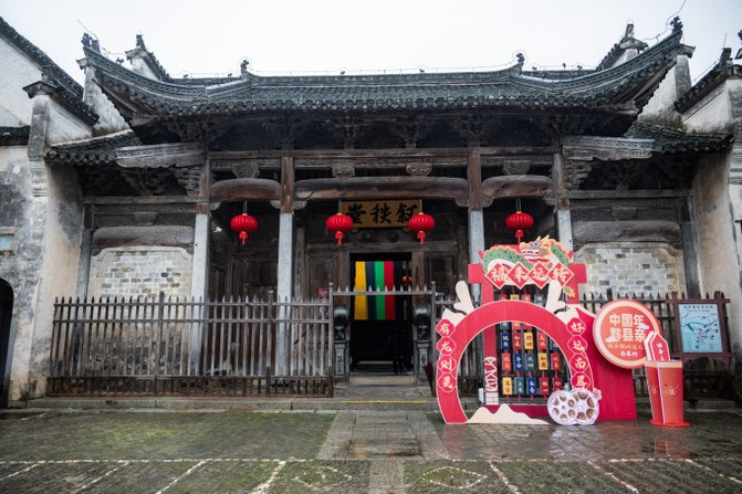 春节期间的西递处处洋溢着急你的气氛,春节元素布置的特别多。上面说的集章打卡,西递的打卡点在胡文光刺史牌坊和敬爱堂(胡氏宗祠)两个地方。