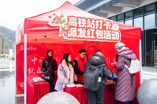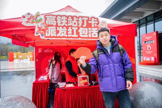 除了门票优惠,春节期间在高铁站出站口还可以凭高铁票直接领红包,而且不玩虚的,红包里抽到实物奖品当场就可以带走。所以大家出站看到这样一个站点,千万不要以为是什么套路或者办业务的,是文旅实打实的送红包!