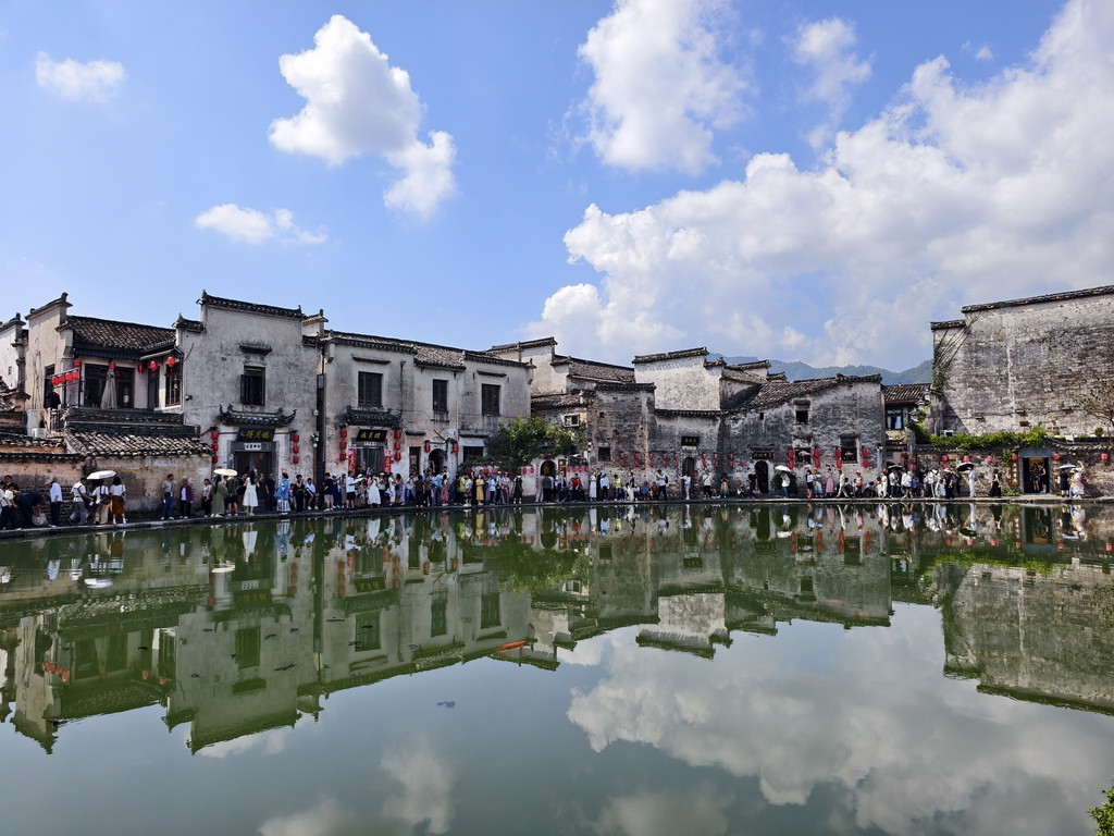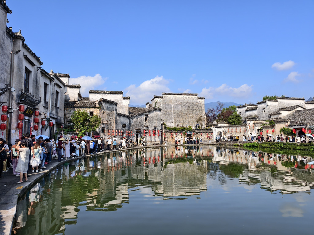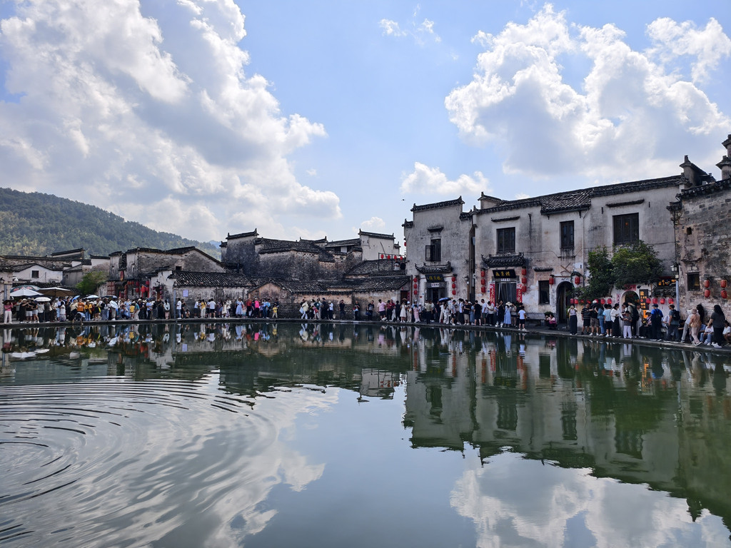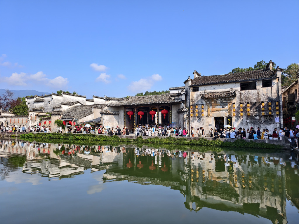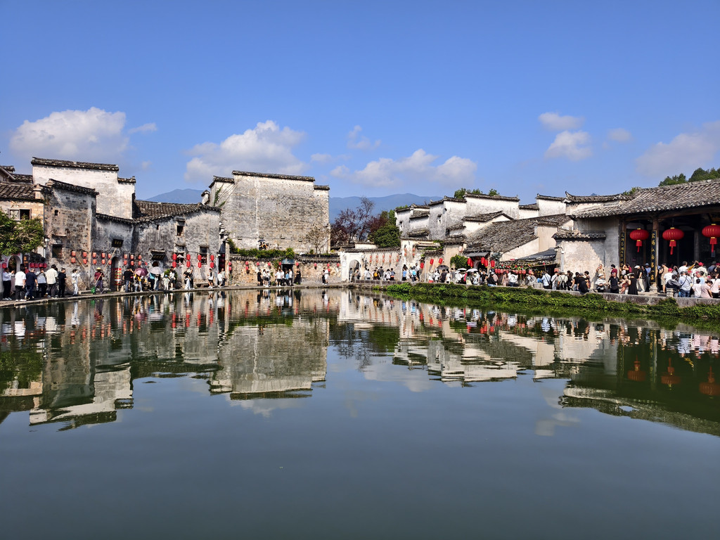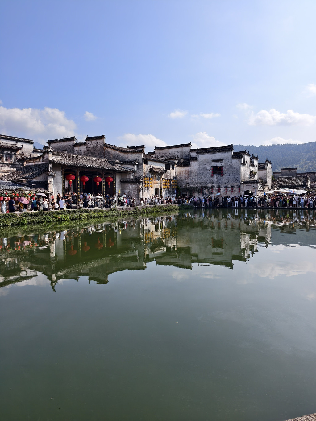 2025年10月4日上午8时半,我离开安徽休宁齐云山打滴滴前往黟县宏村,花费58元多车费。徽派古村落我在1997年4月曾到过江西婺源的延村,时隔近三十年再看徽派古村落就是黟县宏村了。